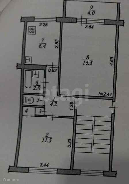Площадь кухни 6.4 м2