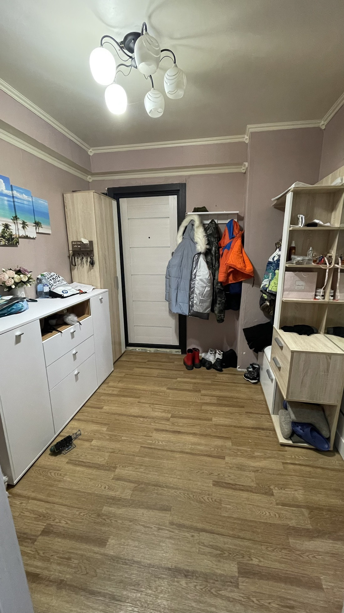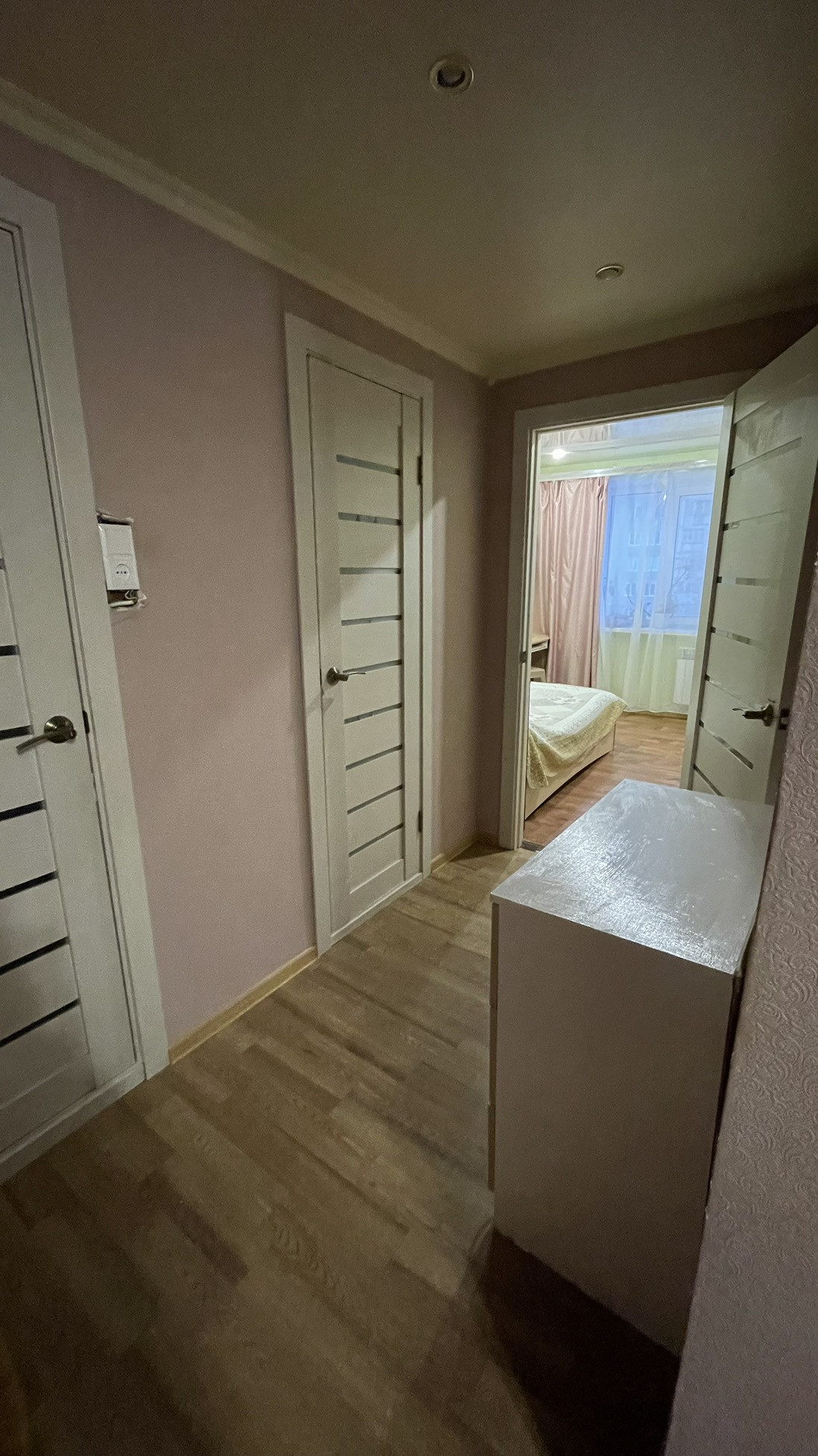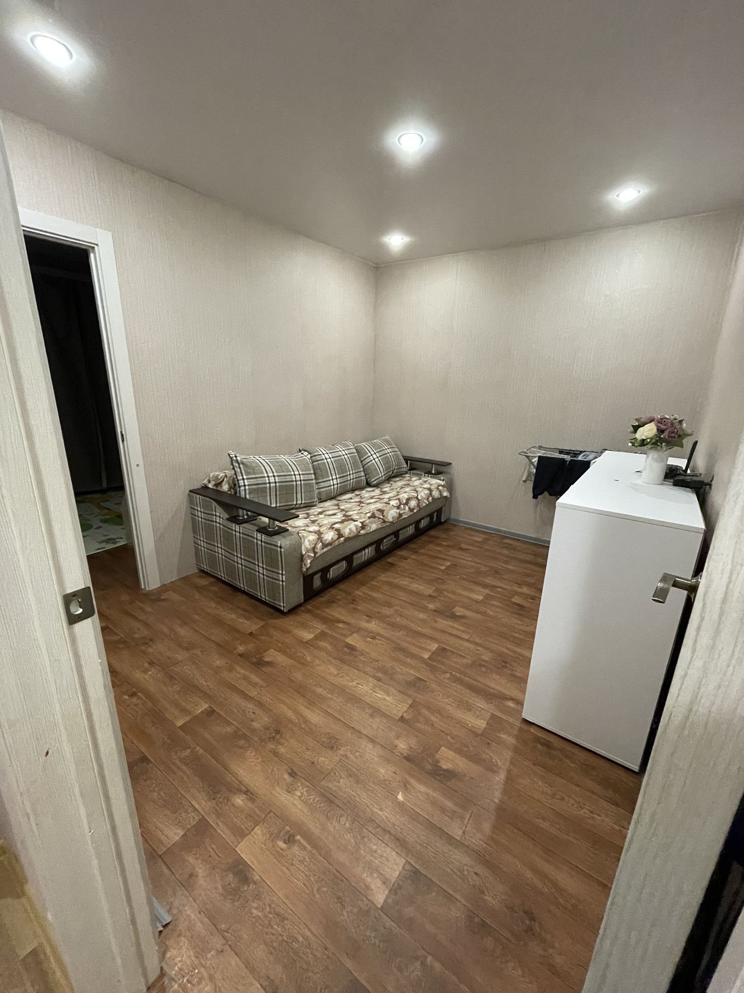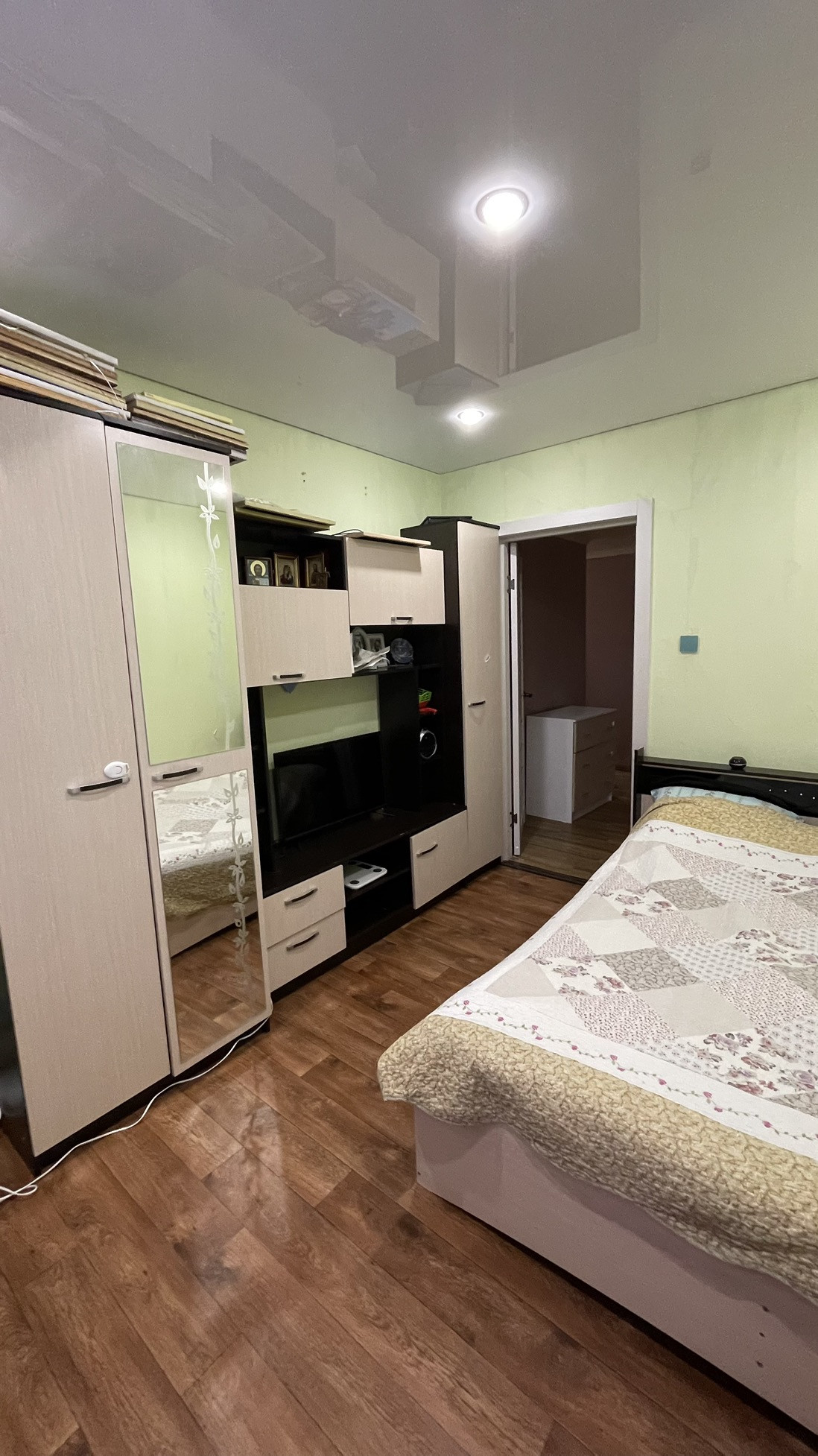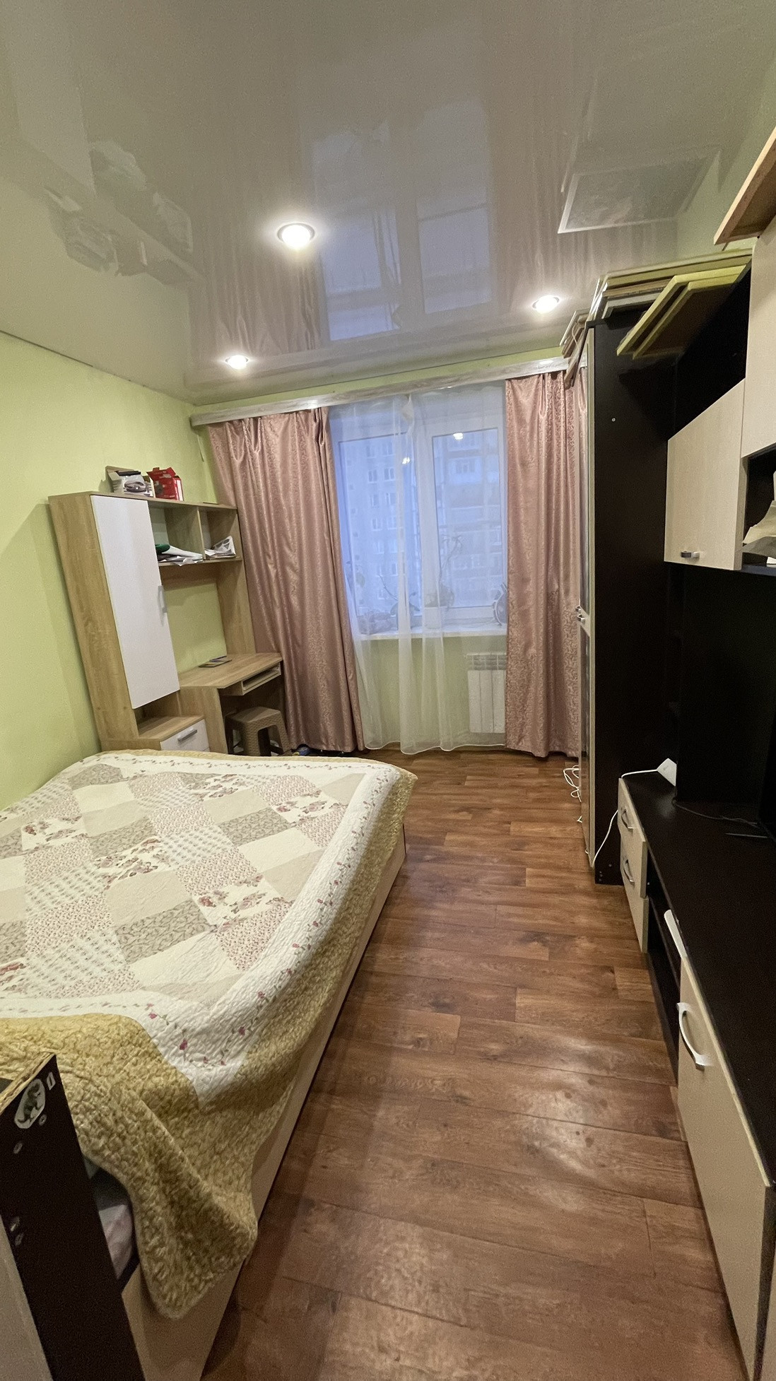 Общая площадь 53,2 кв.м. В большой комнате  19,5 кв.м сделана перегородка из гипсокартона. По факту получается 3 комнаты. В ванной комнате и санузле плитка. Во всех комнатах натяжные потолки. Везде пластиковые окна, входная дверь хорошая. Удобное расположение комнат, окна выходят и во двор, и на дорогу. Большой утеплённый балкон.  Прихожая приличных размеров. Спокойные соседи, подъезд тихий.