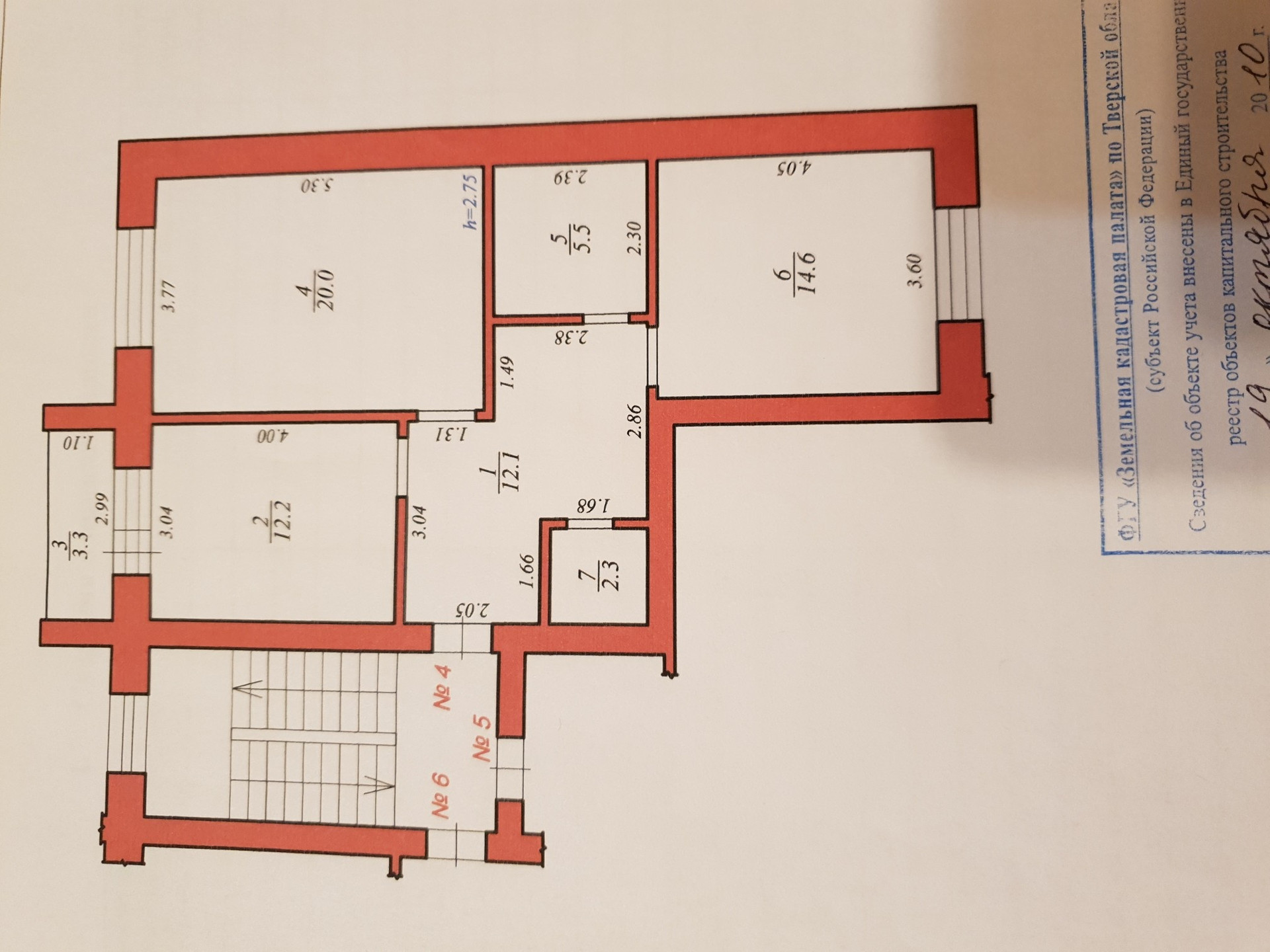 Высота потолков 2.75 м