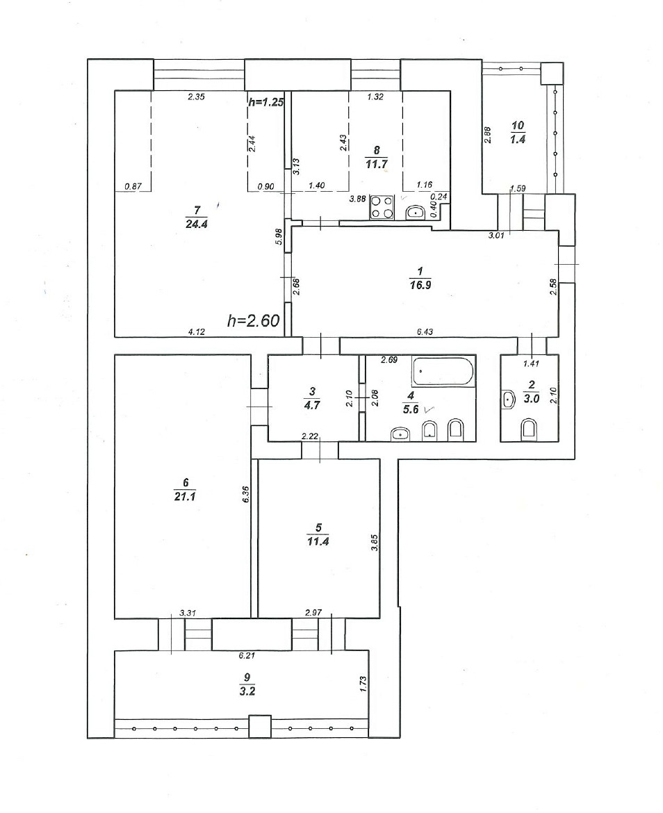 Жилая площадь 56.9 м2