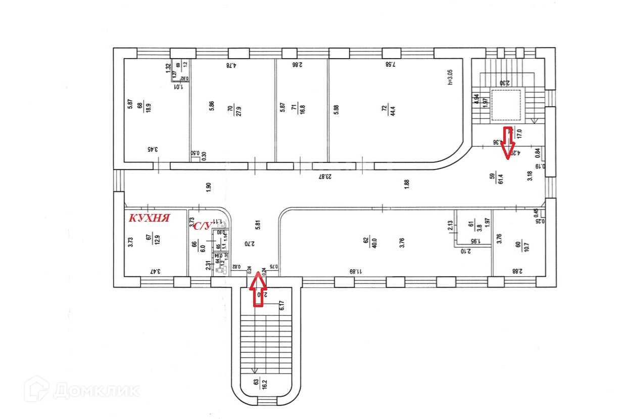 Высота потолков 3.05 м