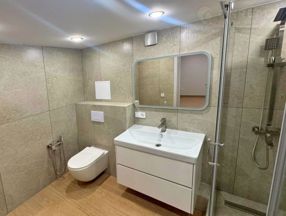 В ванной душевая, гигиенический душ, зеркало с подсветкой.