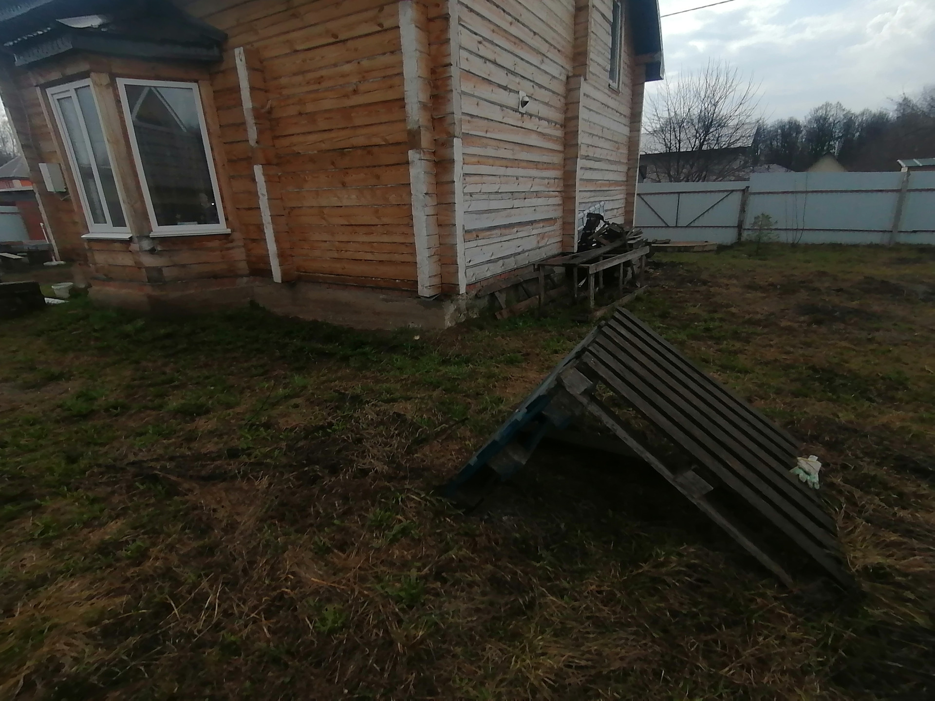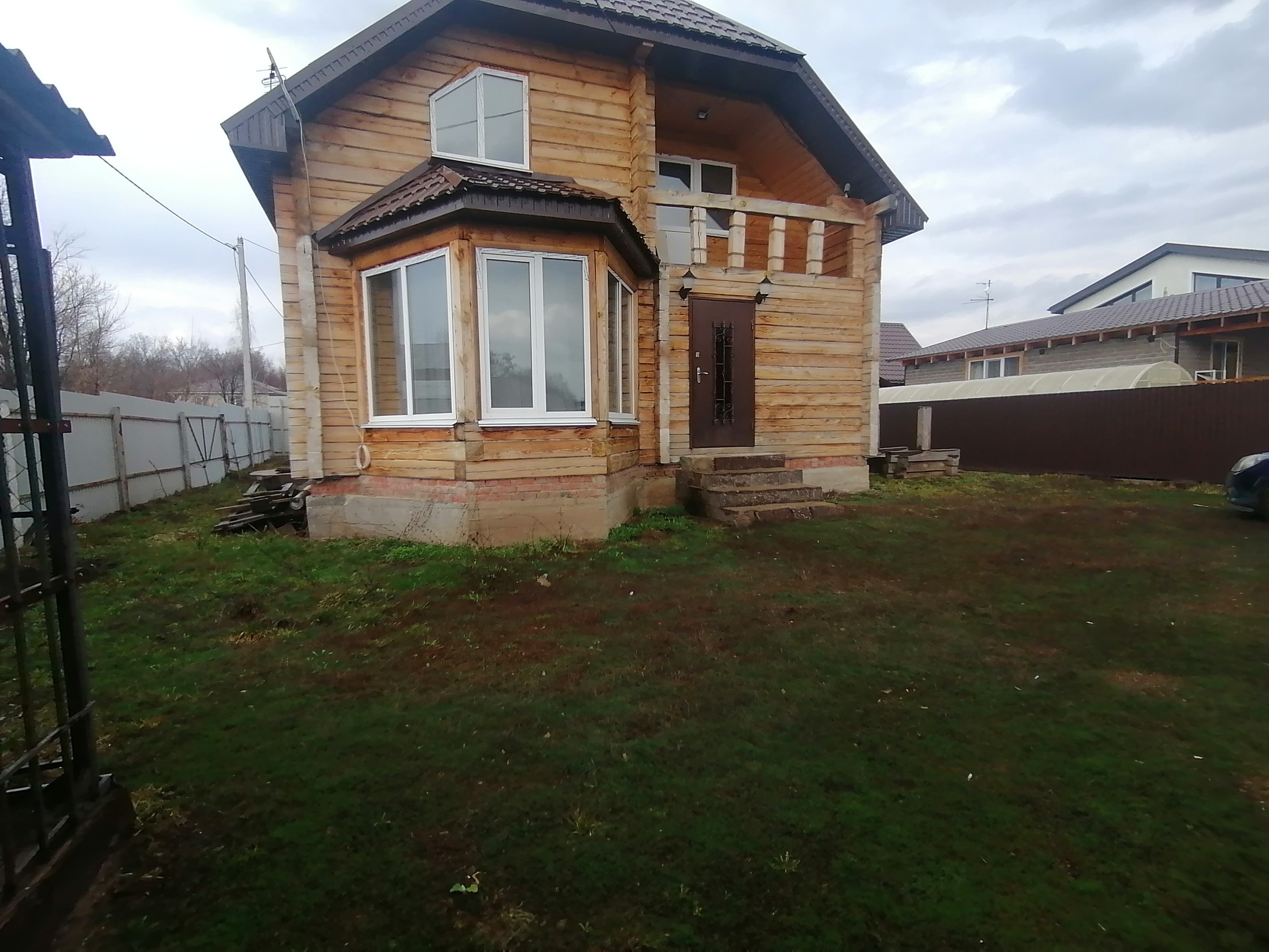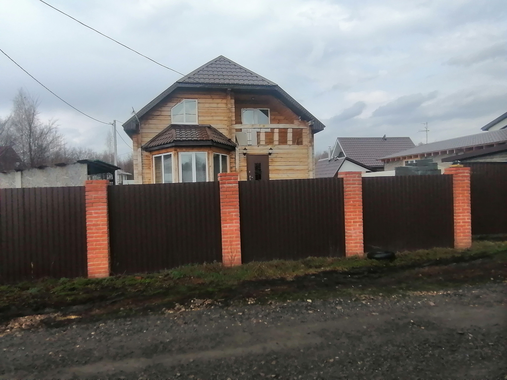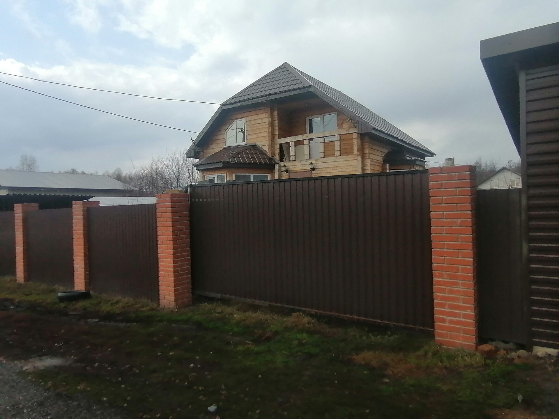 По периметру участка забор из профнастила ,а также въездные ворота с электроприводом.
