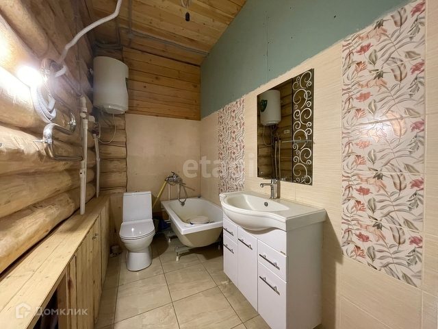 Баня рядом с домом на участке. По полу выполнены все подготовительные работы для подключения подогрева (система готова).