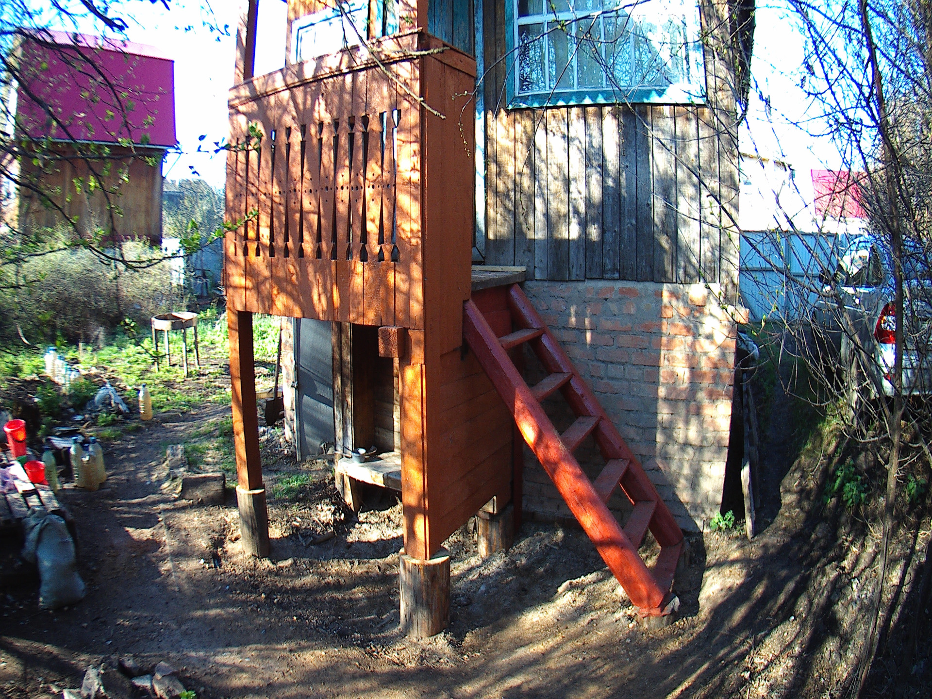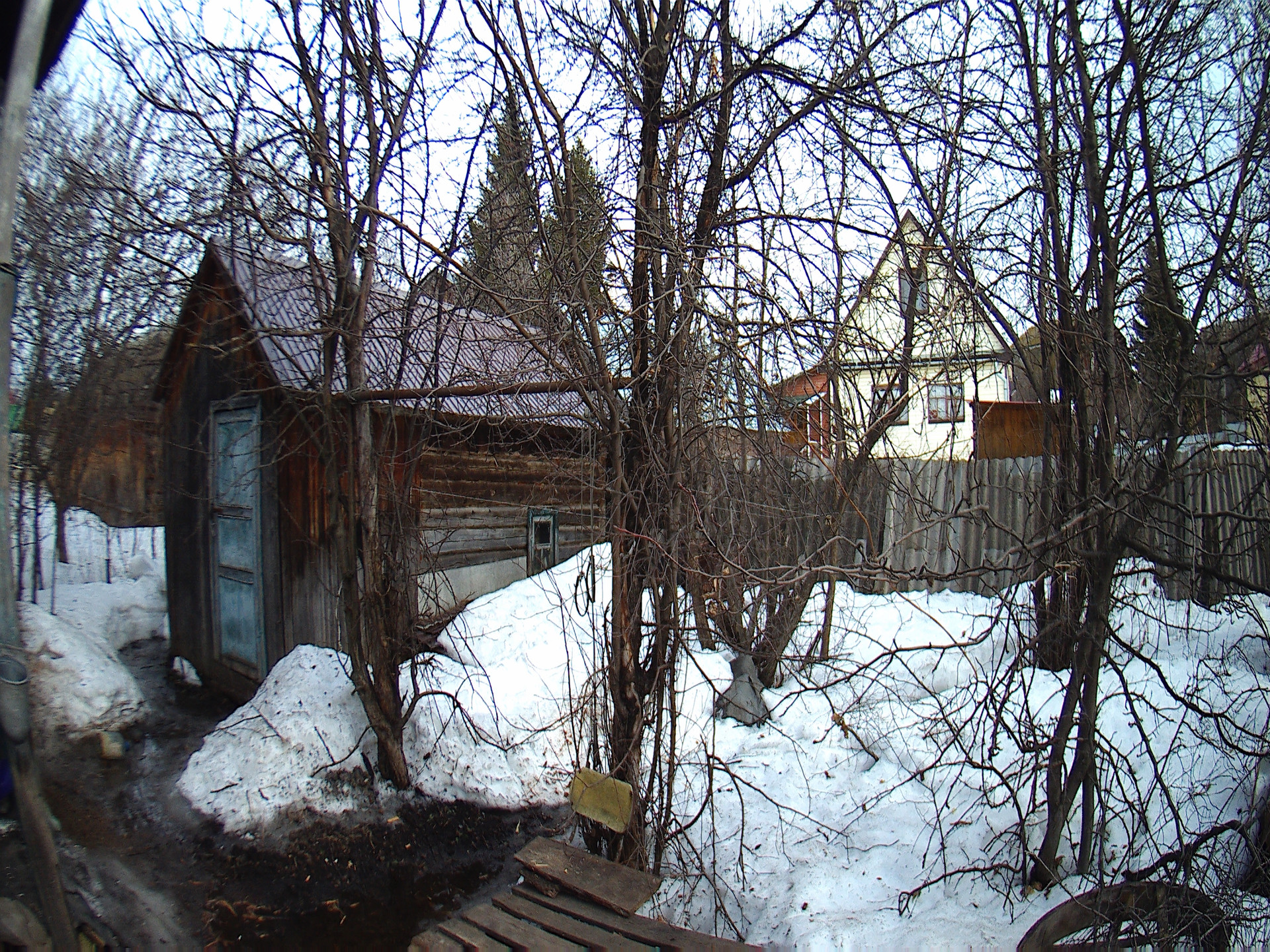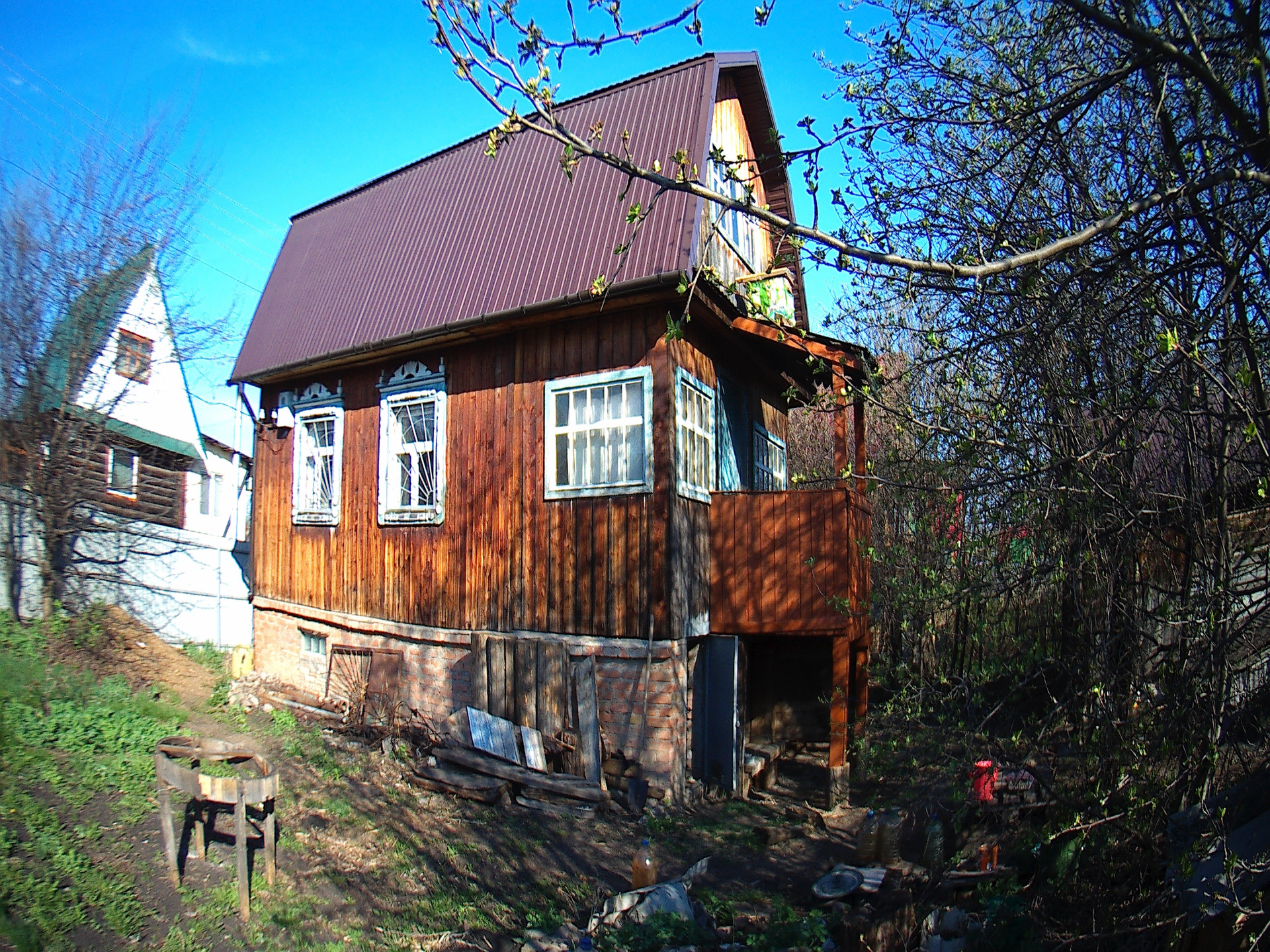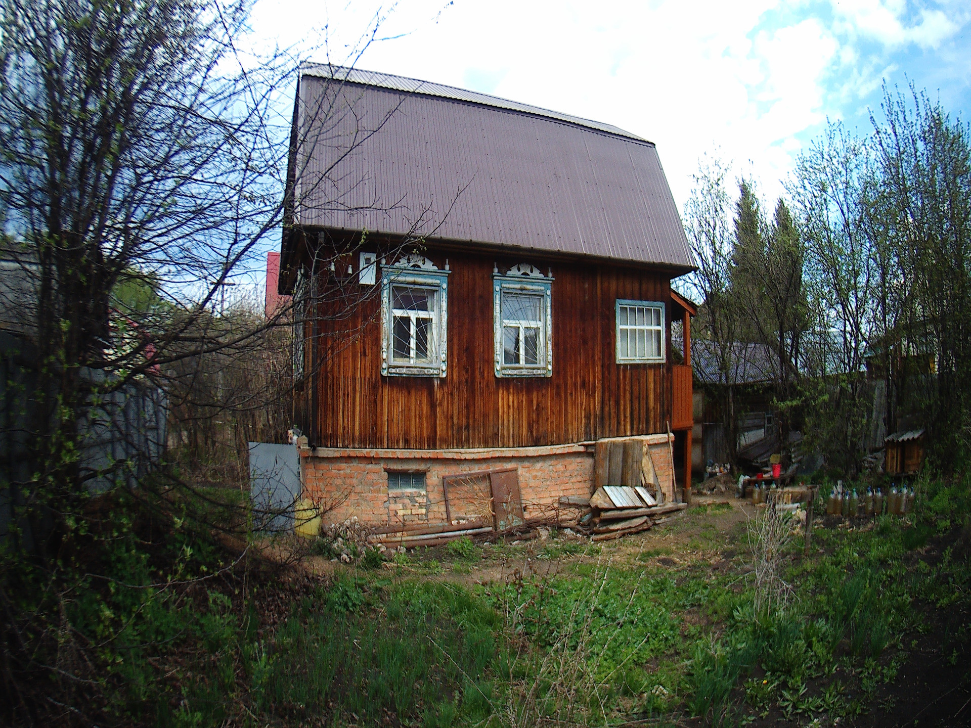 Новая крыша - металлический профнастил по обрешётке . Железные решётки на окнах и металлическая решетчатая внутренняя дверь. Капитальный новый забор из профнастила.