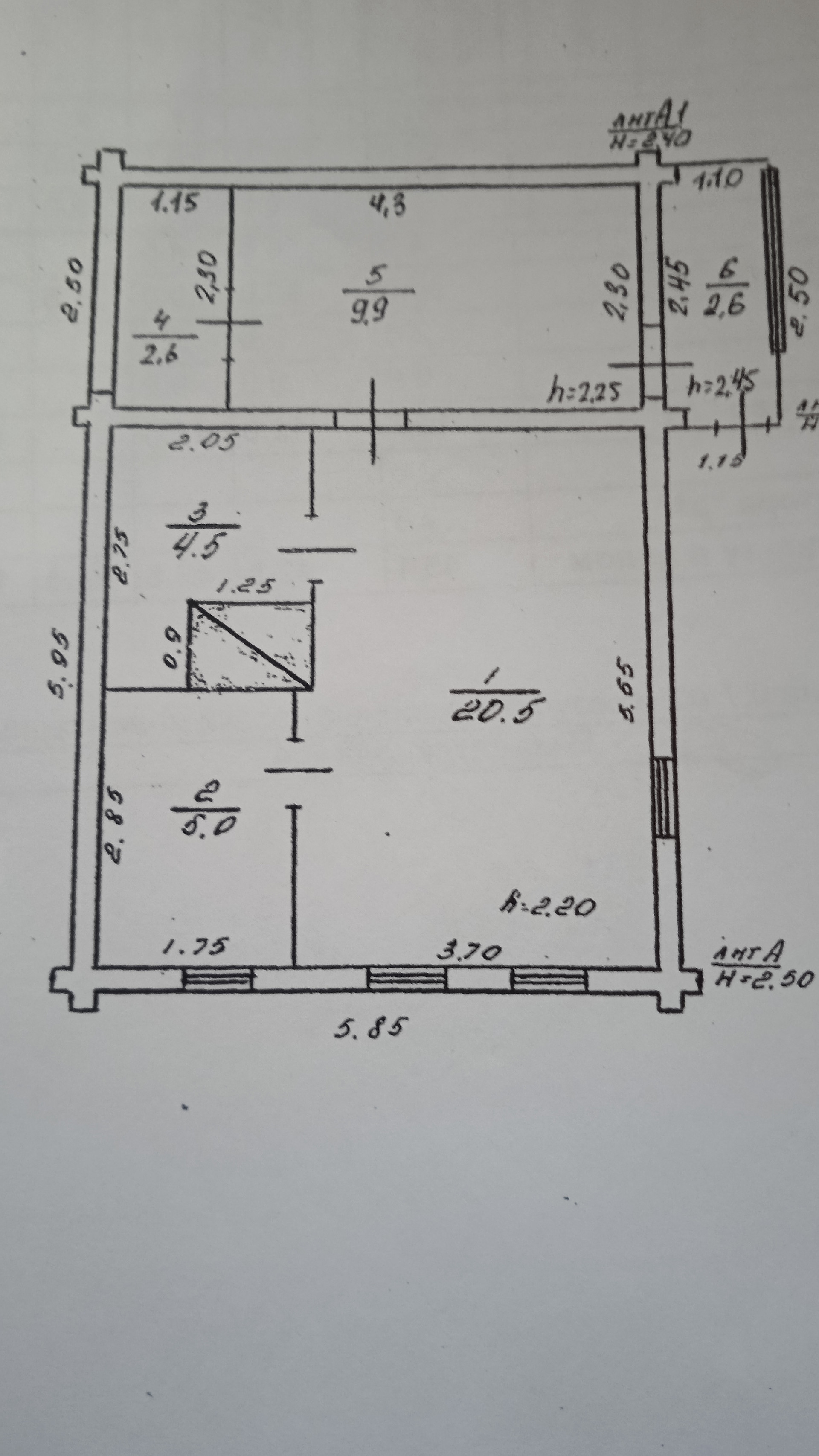 Общая площадь 42.5 м2