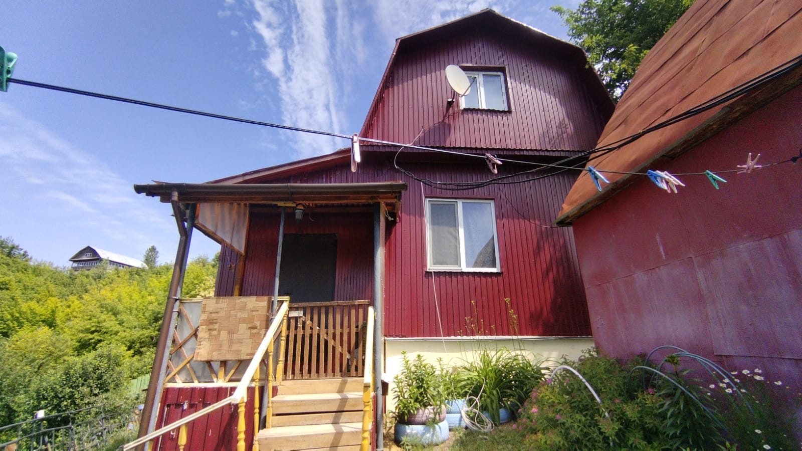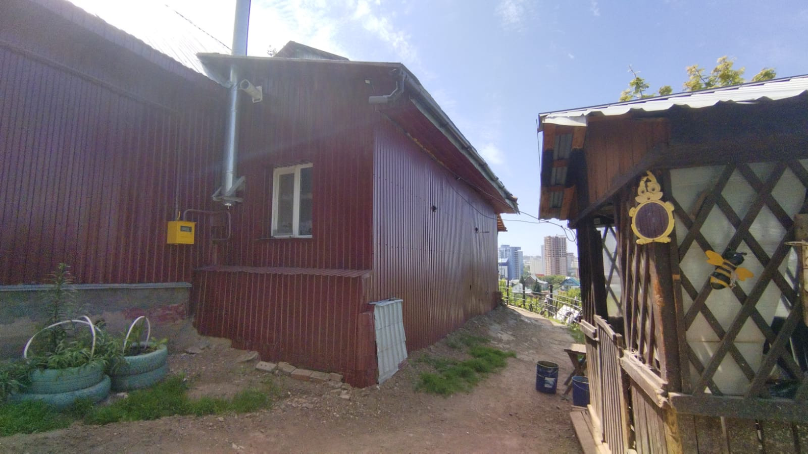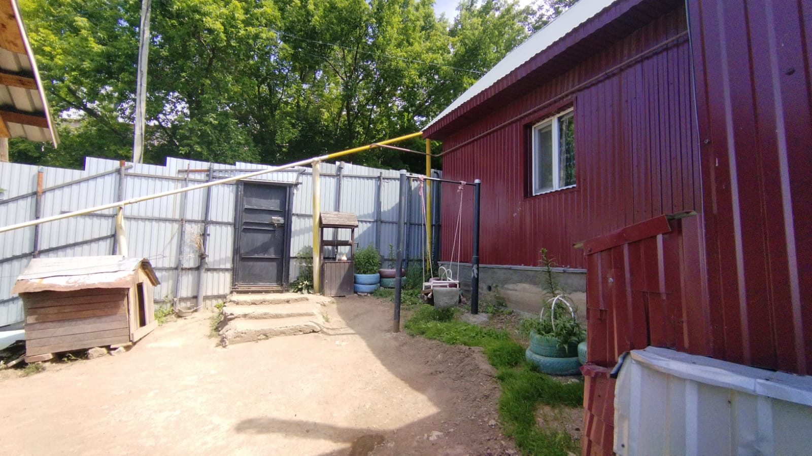 По периметру дом огорожен забором из профнастила.