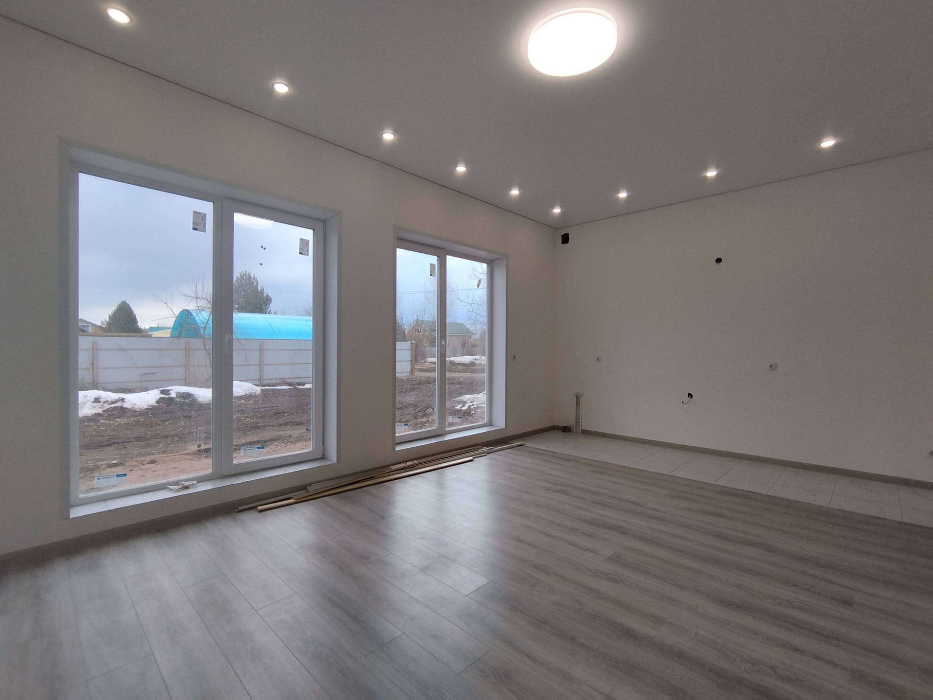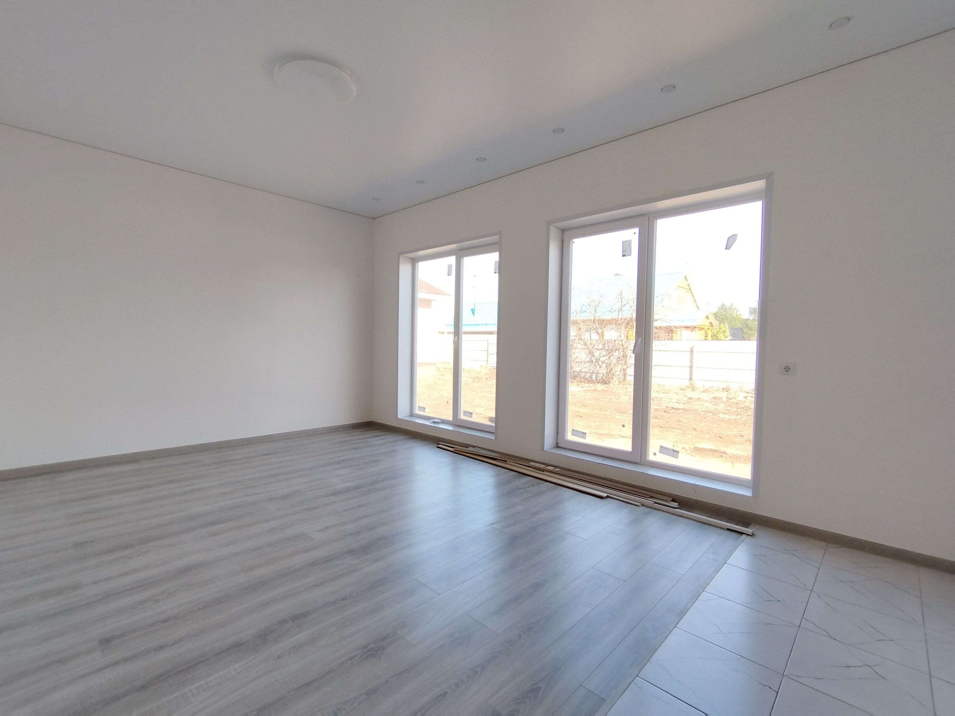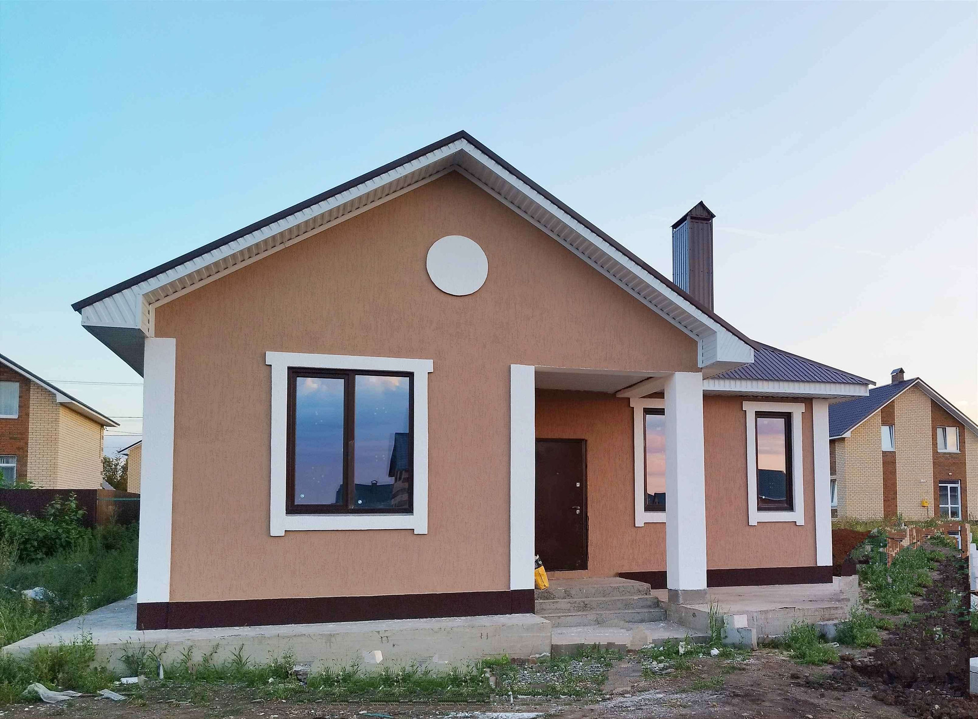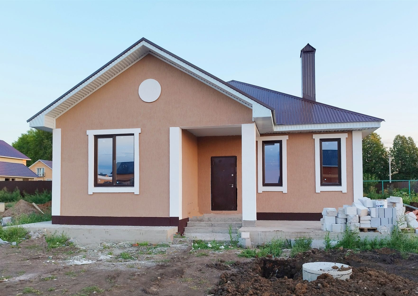 На 6 сотках земли дом имеет площадь 100кв.м и состоит из трёх спален, кухни - гостиной, санузла и бойлерная.