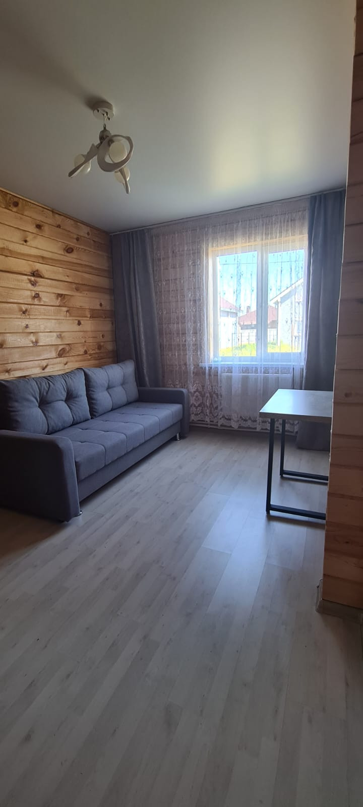 Гостевая комната 12 м2. Кухня -гостиная 23.5 м². Из гостиной есть выход на внутреннюю часть участка, вы можете здесь обустроить все, что угодно:  сад, террасу, огород или детскую площадку.