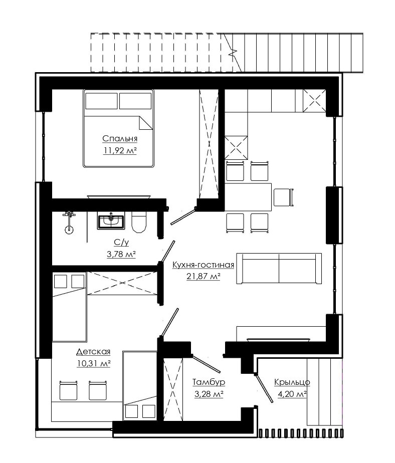 Общая площадь 55 м2