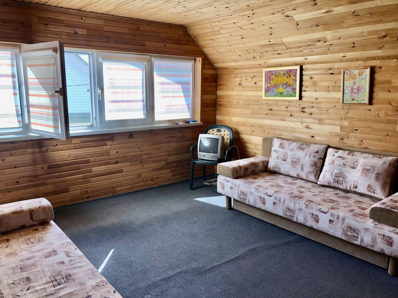 - Гостиная, с обеденным столом и диванчиками;