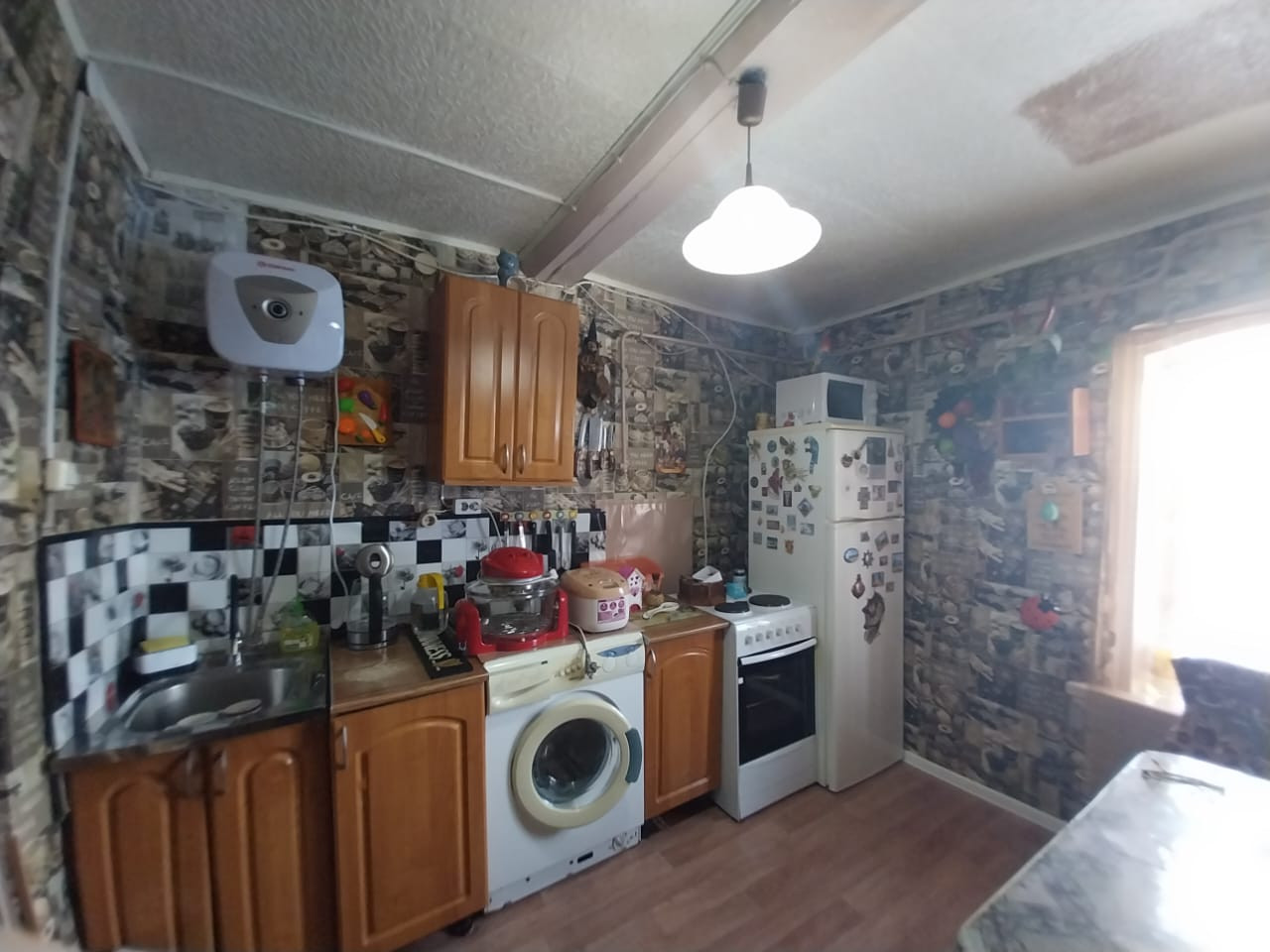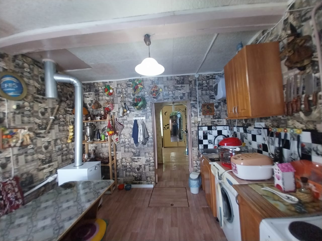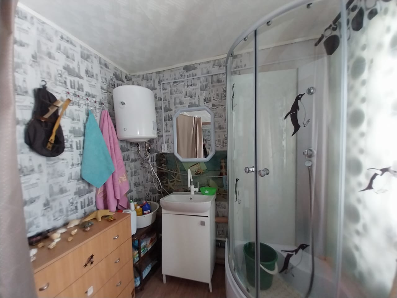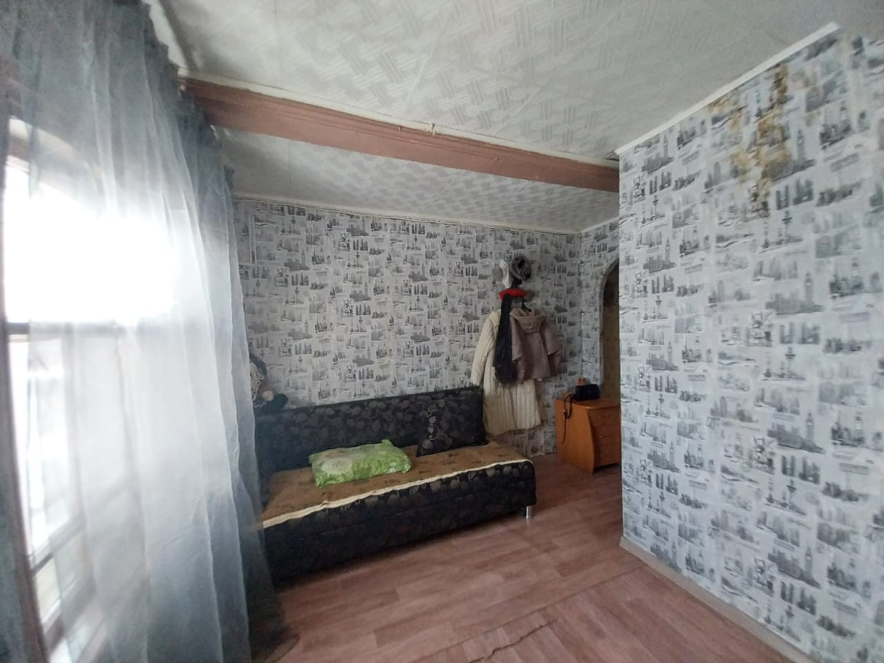 Дом из бревна с террасой, ремонт средний подходит для проживания и для сдачи в аренду. В доме зал 22,9; комната 12,3 ; кухня 9,1: санузел 4 ; терраса с подсобкой 21. В доме остается вся мебель и техника. Установлены новое АОГВ и душевая кабина и два обогревателя горячей воды на кухне и санузле. Вода и газ в доме. Так же имеется земля почти три сотки для посадки. Есть место для парковки машины. В данное время в доме никто не проживает.