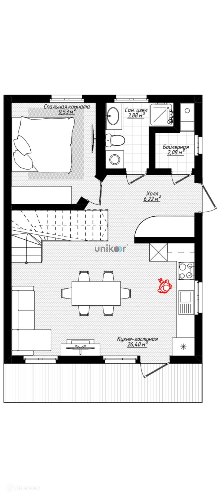Площадь кухни 26.4 м2