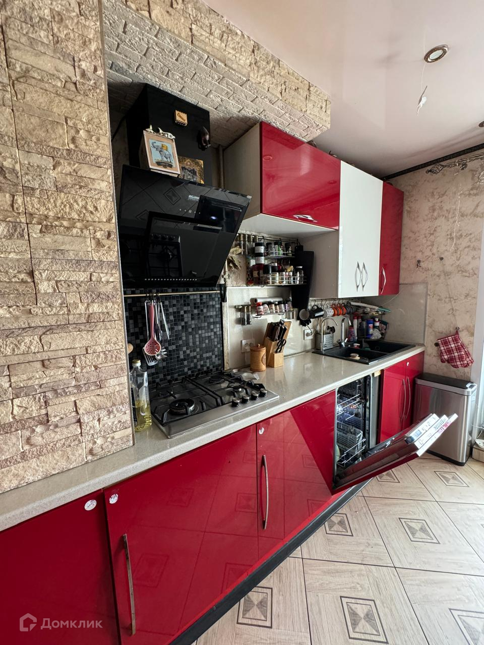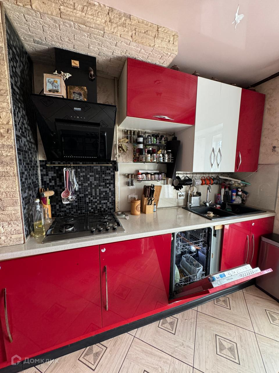 Кухонный гарнитур, встроенная бытовая техника (варочная поверхность, вытяжка, духовой шкаф Bosch, посудомоечная машина Electrolux), двухдверный холодильник.