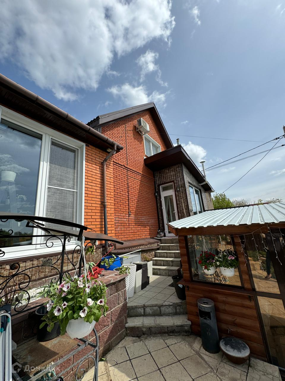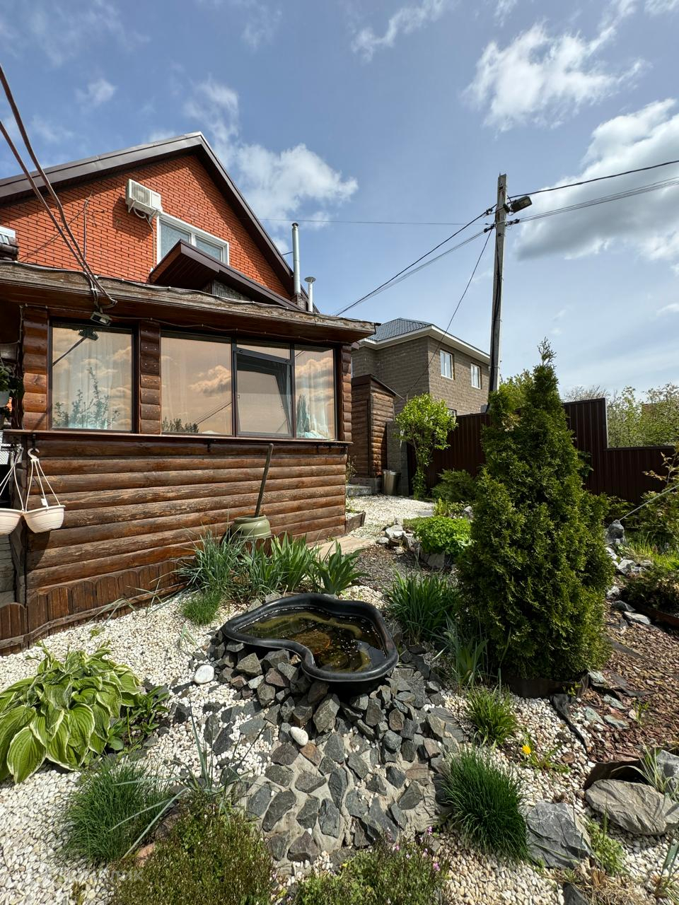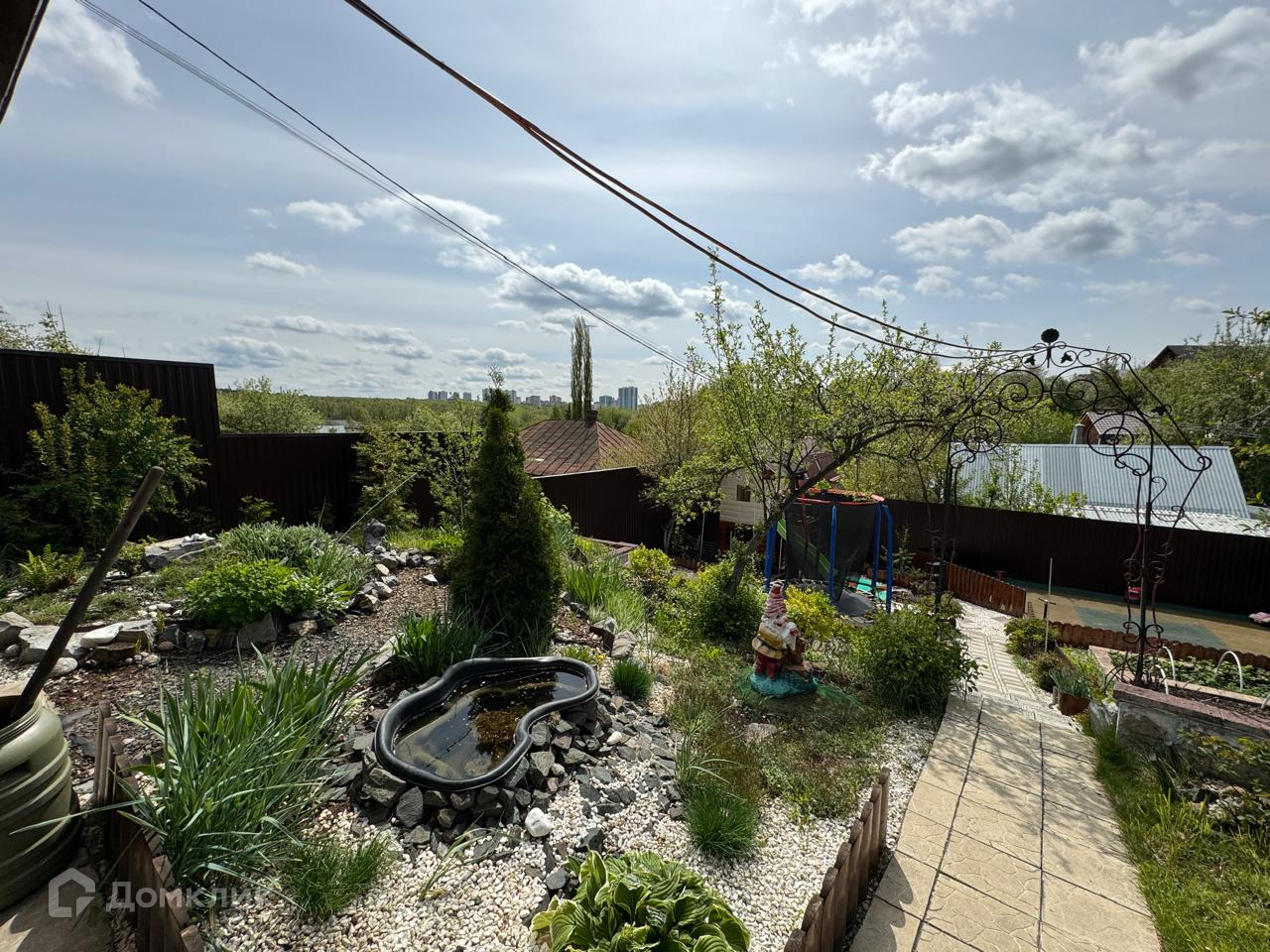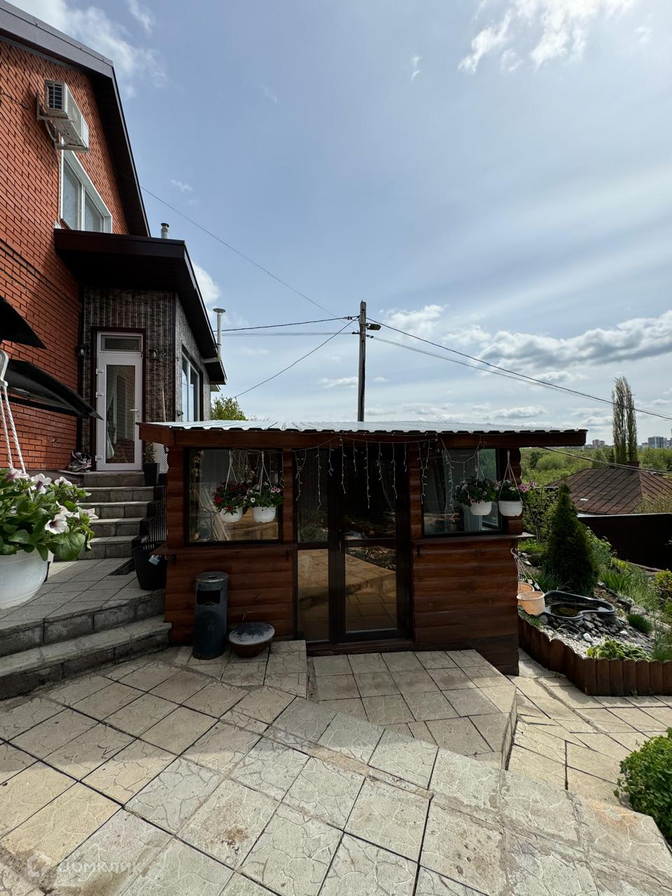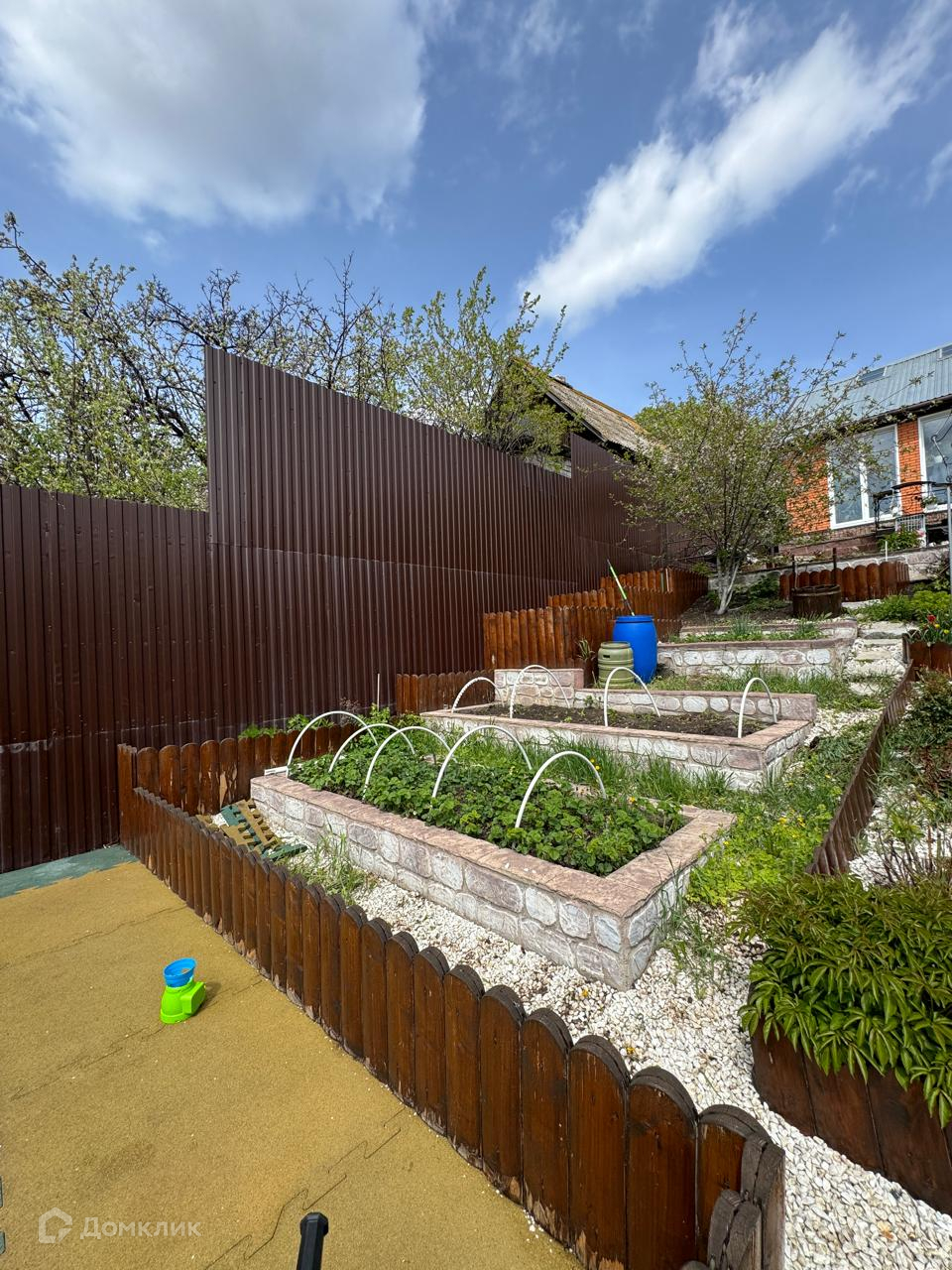 На участке крытая беседка и детская площадка.