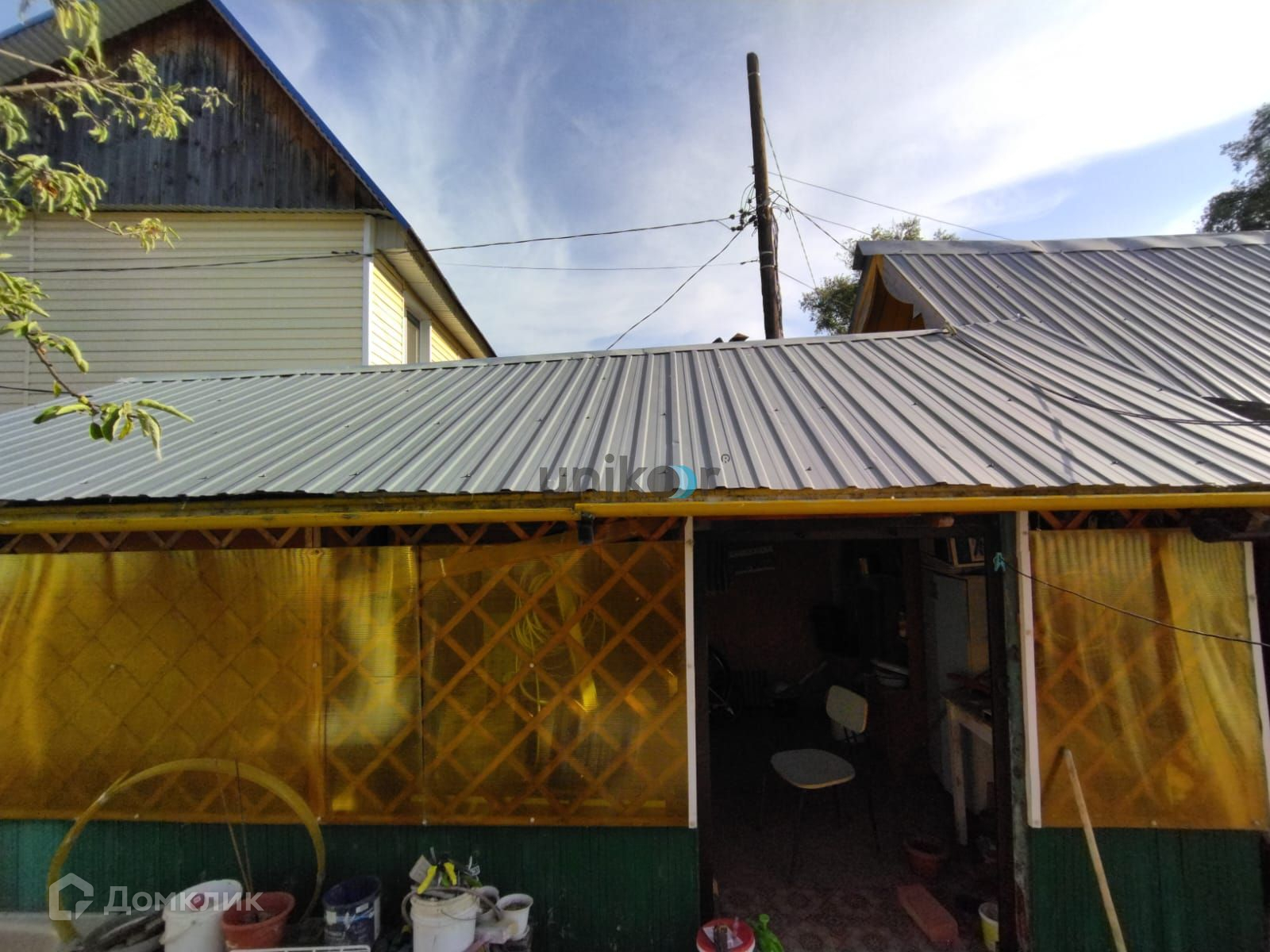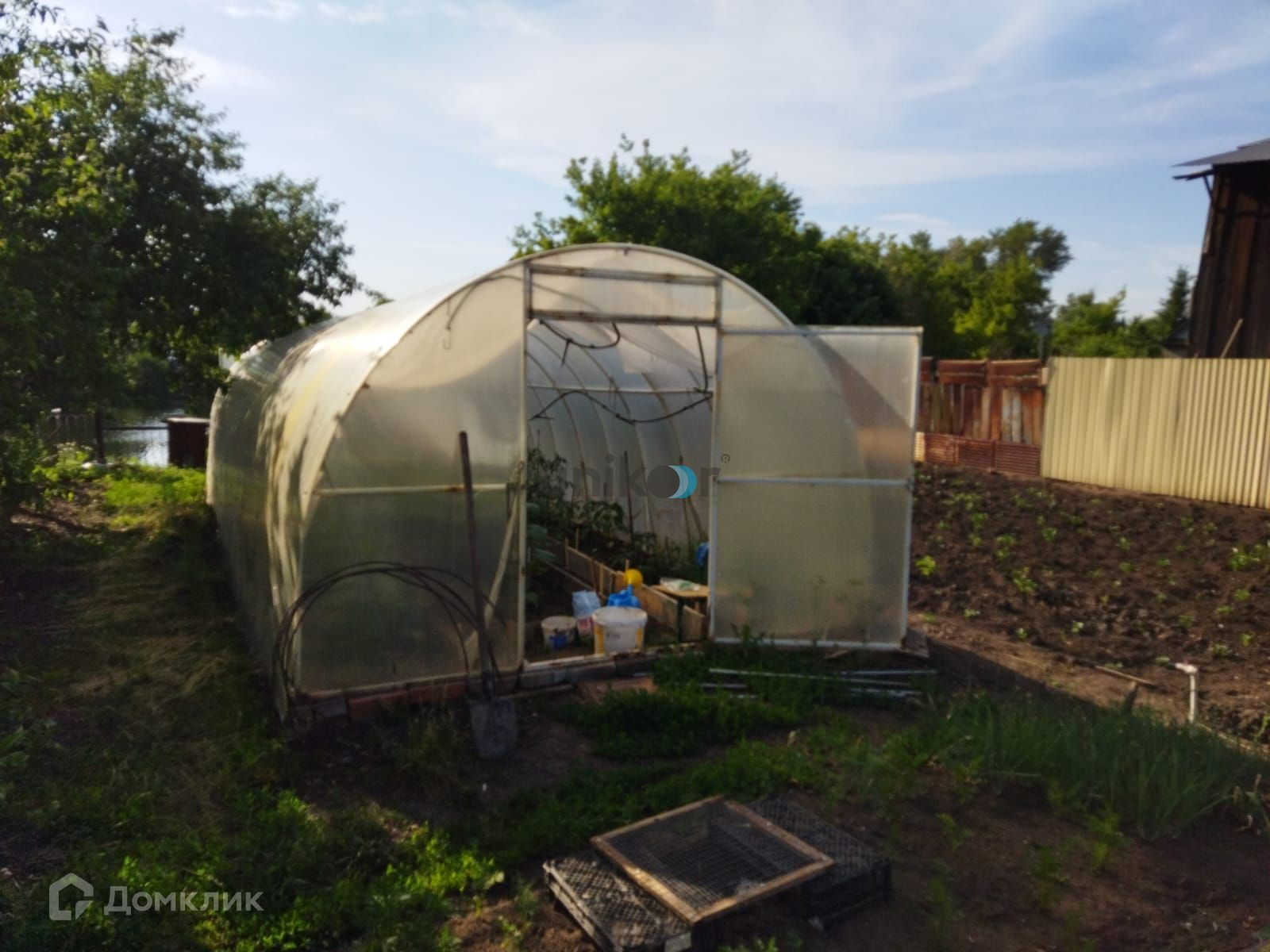 Строения: Дом, бревенчатая баня из липы, (водопровод внутри бани), теплица, уличный туалет, летний домик, дровяник.