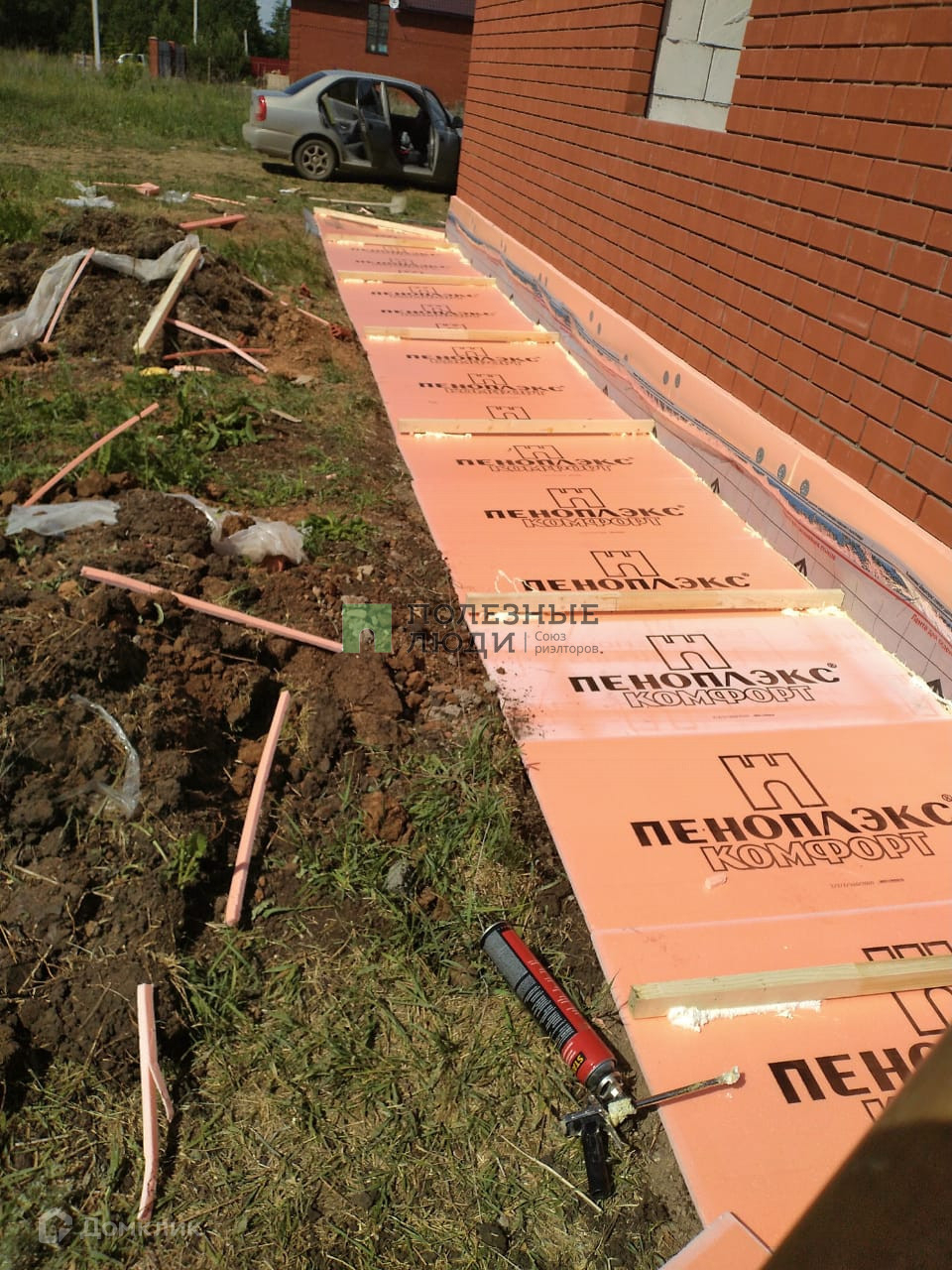 - Энергетическая эффективность: Стены из газоблока толщиной 50 см, уложенные в шахматном порядке с блоками толщиной 30 и 20 см, обеспечивают отличную теплоизоляцию. Отмостки вокруг дома дополнительно утеплены пеноплексом.