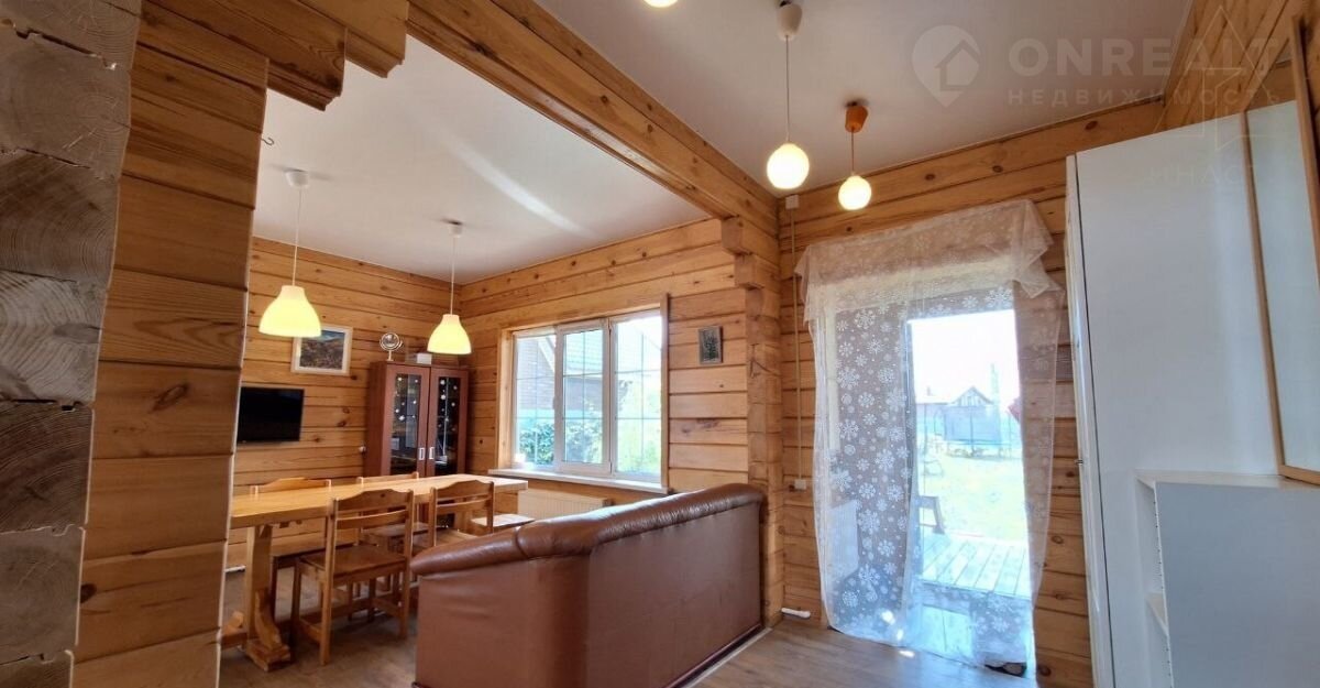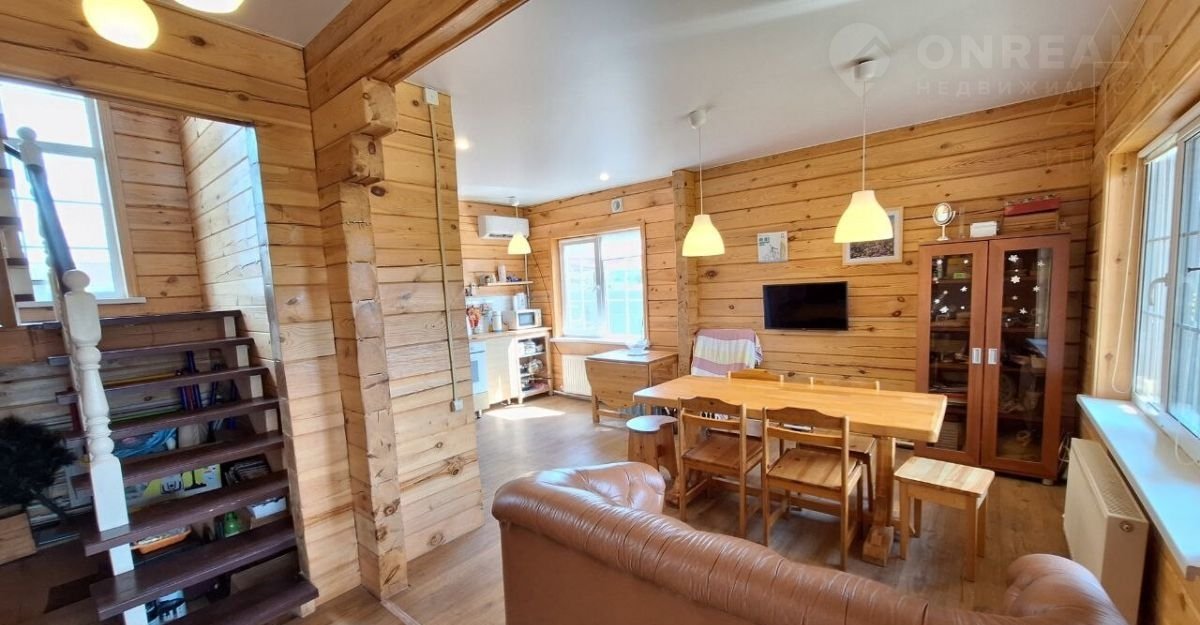 Внутренняя отделка дома оформлена натуральным, шлифованным брусом, потолки натяжные, а полы уложены практичным ламинатом. Благодаря этому находится в доме очень комфортно и приятно. Дом полностью обустроен и готов к проживанию.