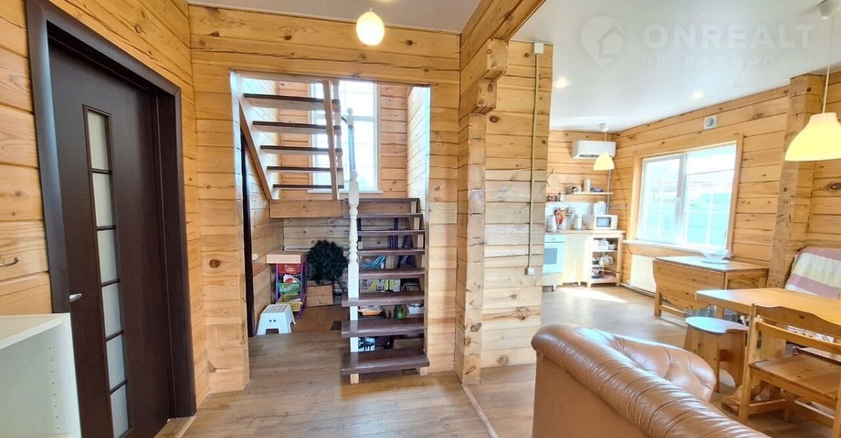На первом этаже расположилась прихожая, большая кухня-гостиная, спальня и ванная комната. На втором этаже находятся две спальни и терраса. Дом очень теплый зимой и прохладный летом, это позволяет существенно снизить платежи за отопление.