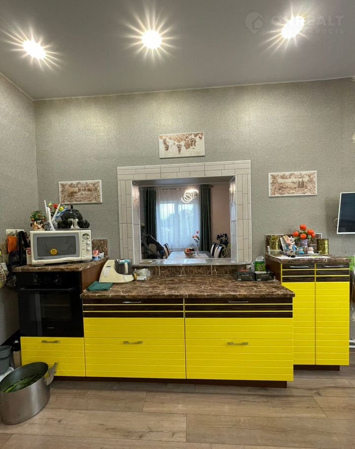 В доме 4 жилых комнаты, кухня, и огромная гостиная. На кухне имеется встроенная мебель и техника: варочная панель, вытяжка, посудомойка,  духовой шкаф "Воsh".  Дом продается с мебелью и техникой (обговаривается).