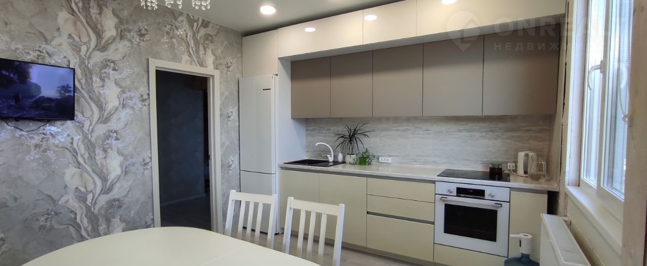 Кухня, оборудованная всей необходимой техникой (посудомоечная машина, индукционная плита, духовой шкаф, вытяжка)