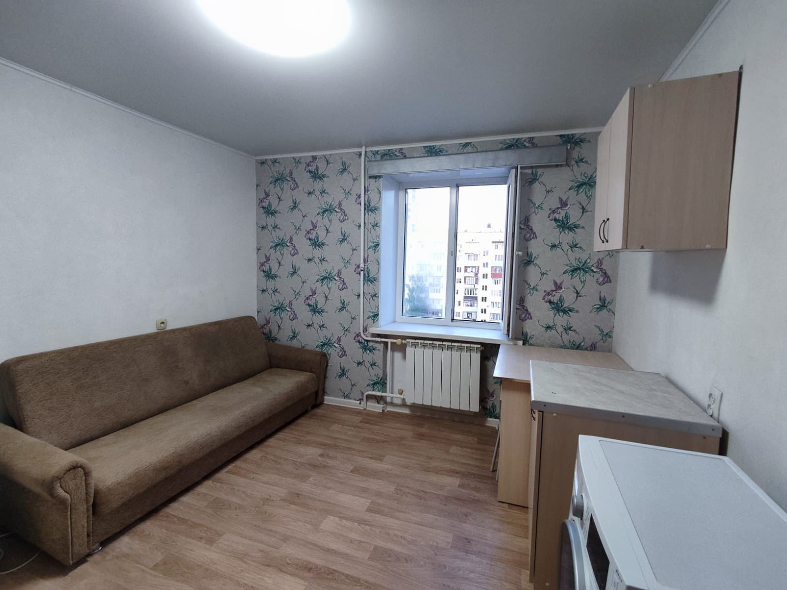 В комнате свежий ремонт: пластиковое окно, натяжной потолок, полы линолеум, новые межкомнатные и входная двери, санузел кафель, все трубы и сантехника поменяны. Новая электропроводка. Батарея поменяна.