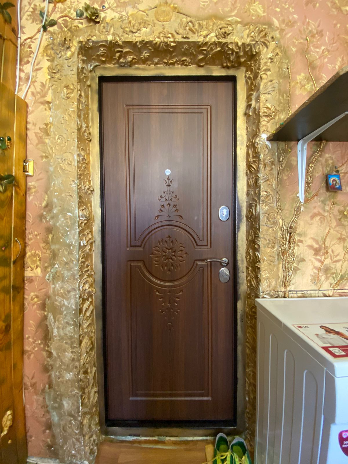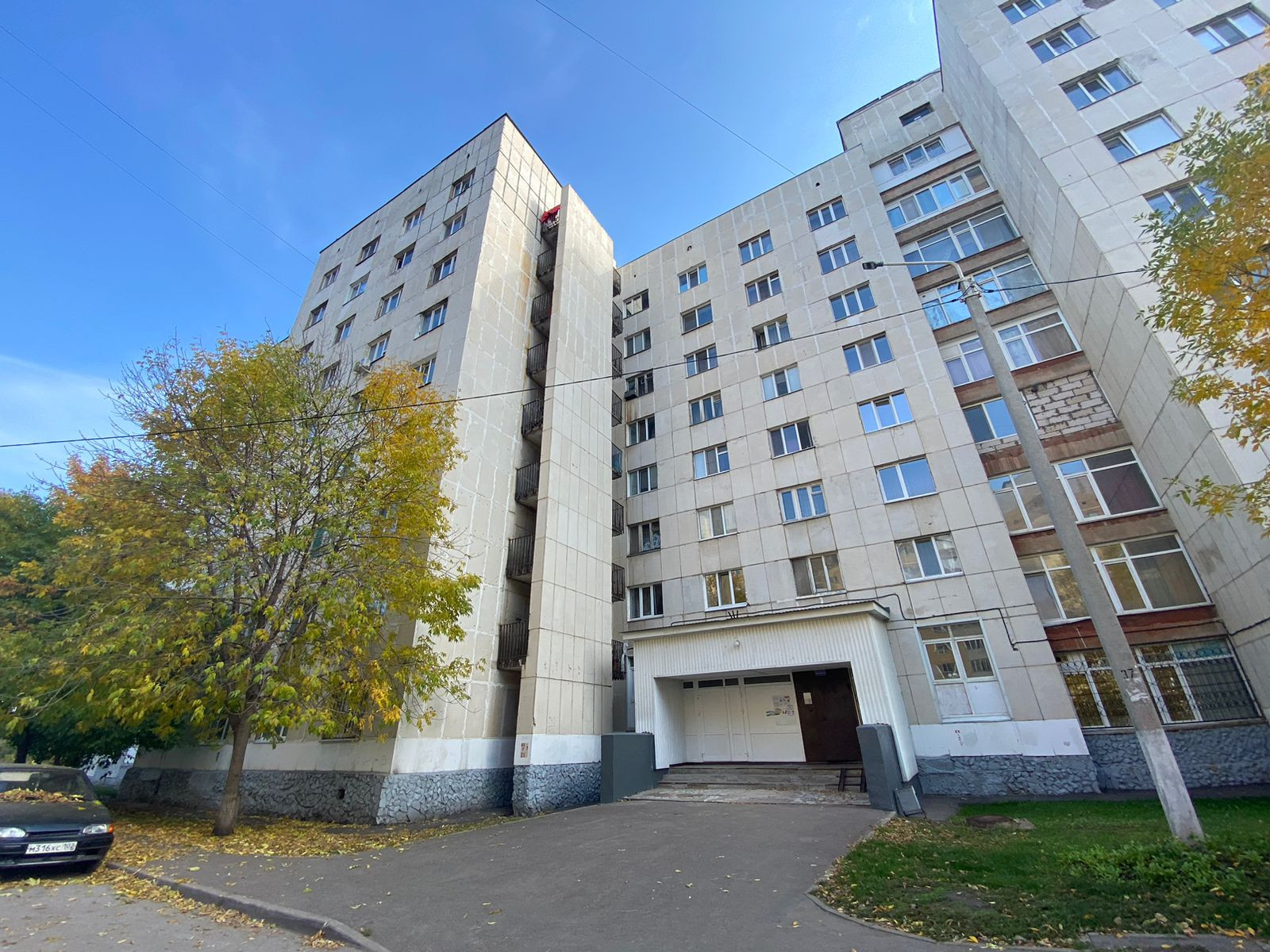 Дворовая территория и дом ухожены, имеется во дворе детская площадка и открытая парковка для автомобилей. На этаже и в подъезде соблюдается чистота и порядок.