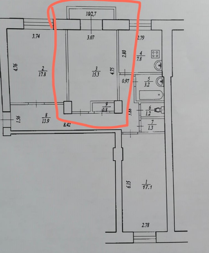 Площадь кухни 7.8 м2