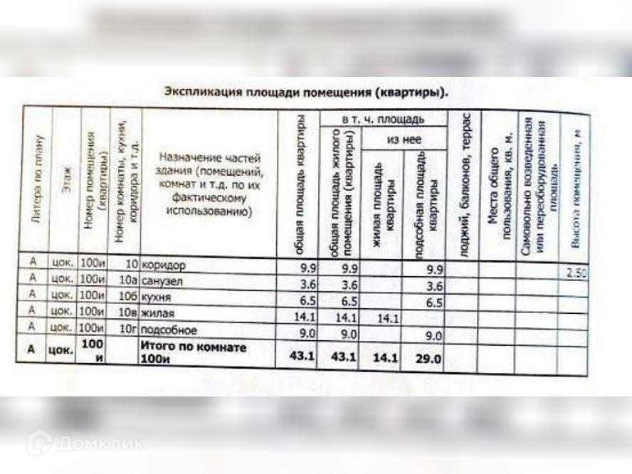 Общая площадь 43.1 м2
