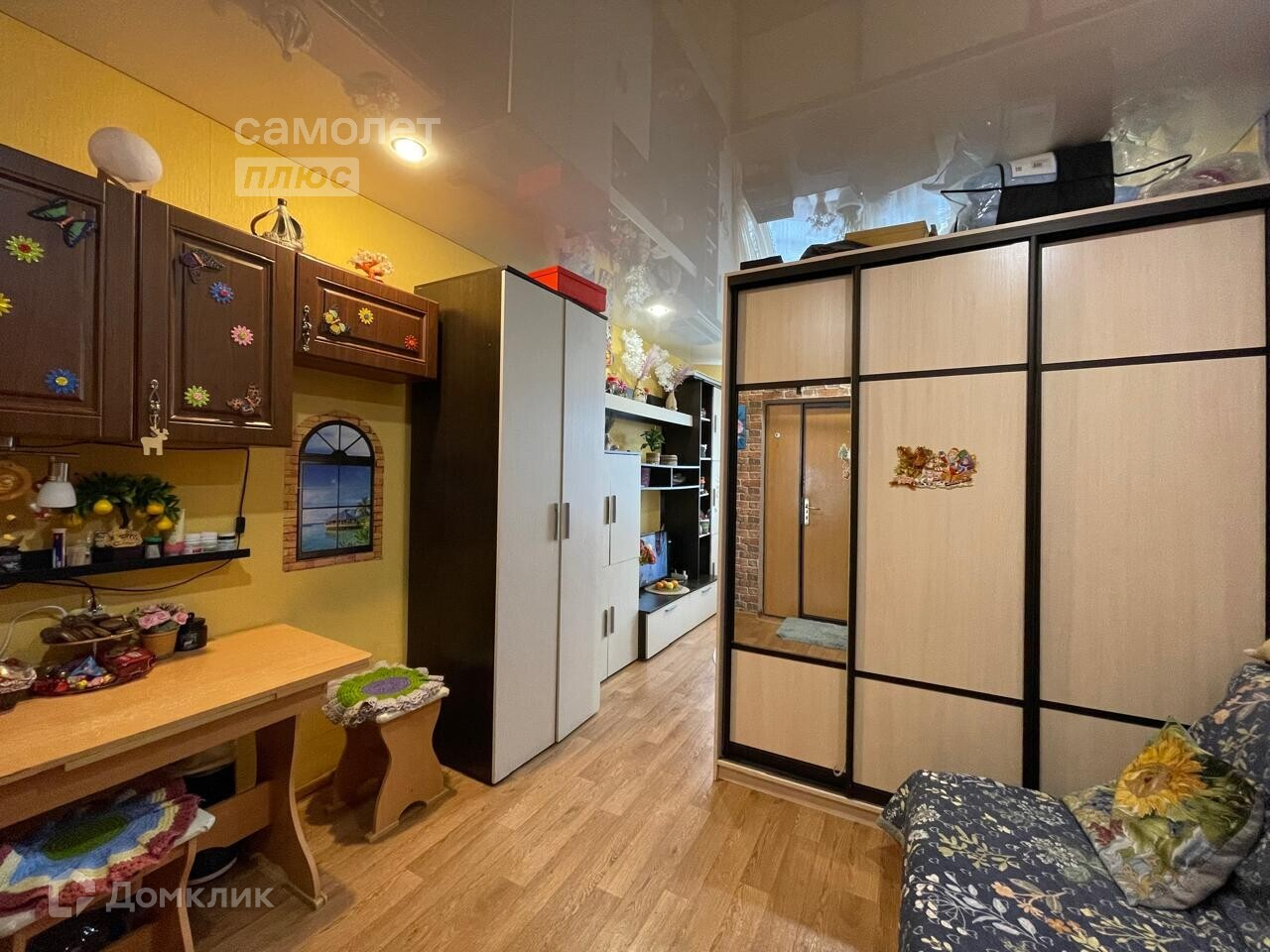 В комнате хороший ремонт, состояние заезжай и живи.