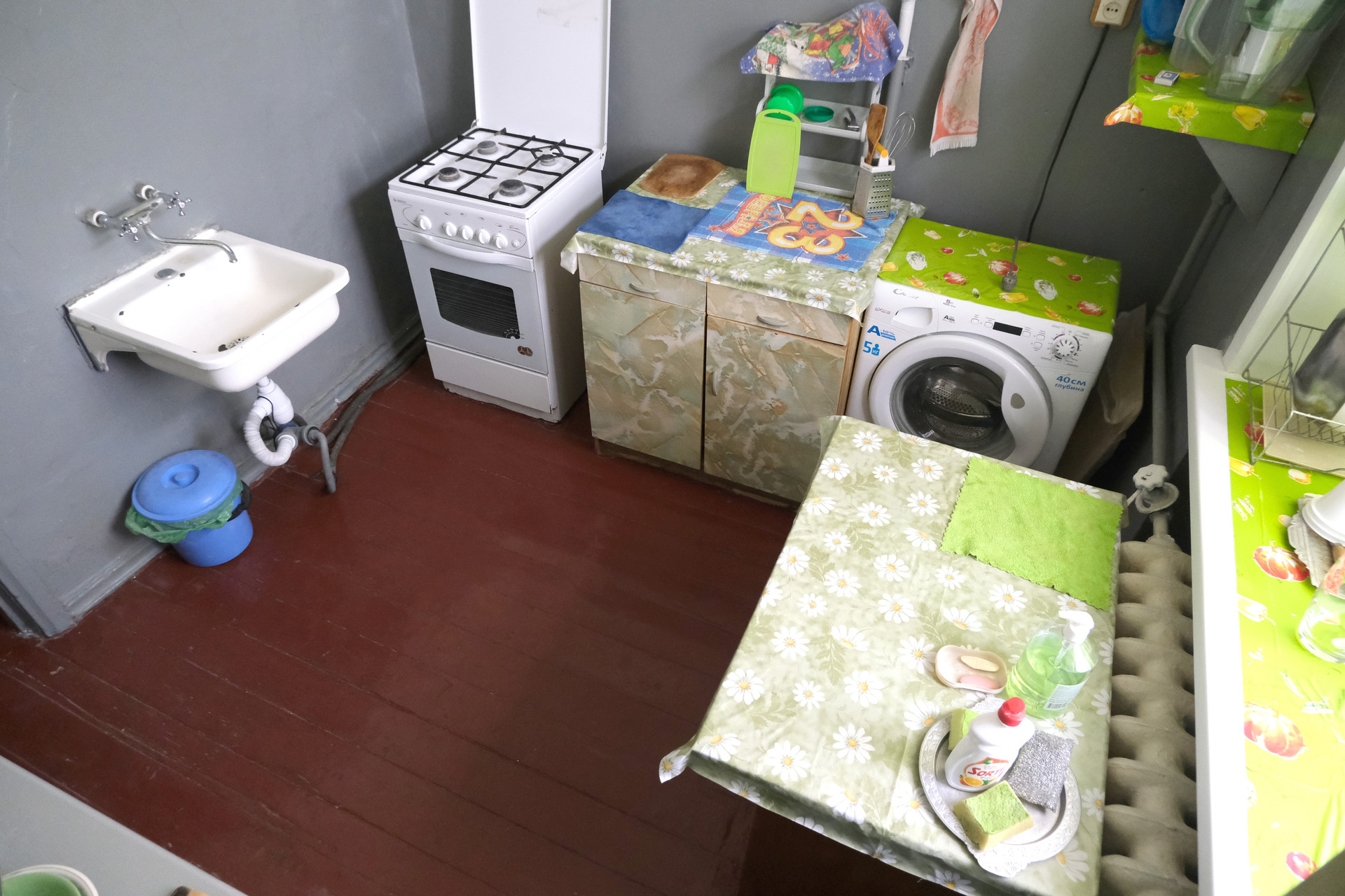 На полу хороший линолеум.