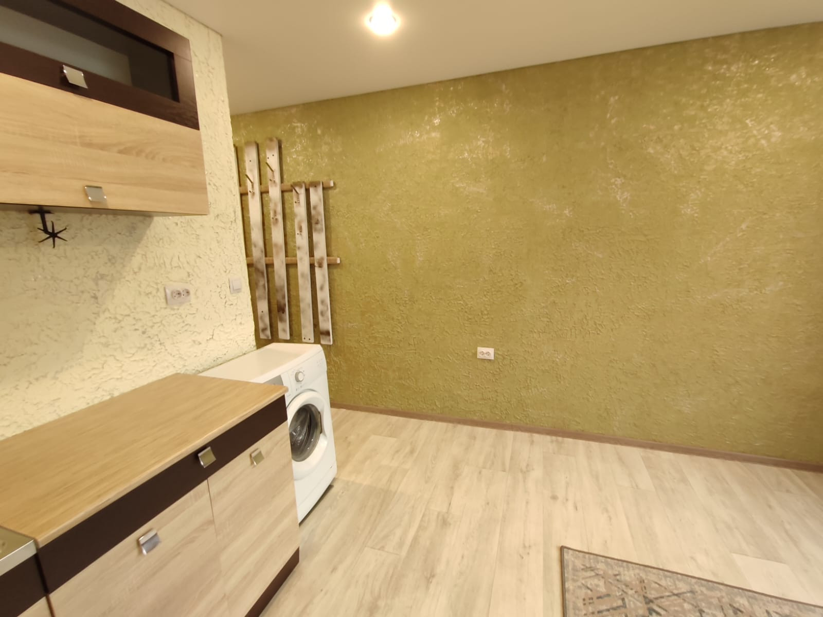 Наша студия укомплектована мебелью: новый двухместный диван евро-книжка, новый кухонный гарнитур ( вода подведена), вешалка для одежды и тумбы для обуви и вещей. Стиральная машина имеется, также остается новым владельцам!