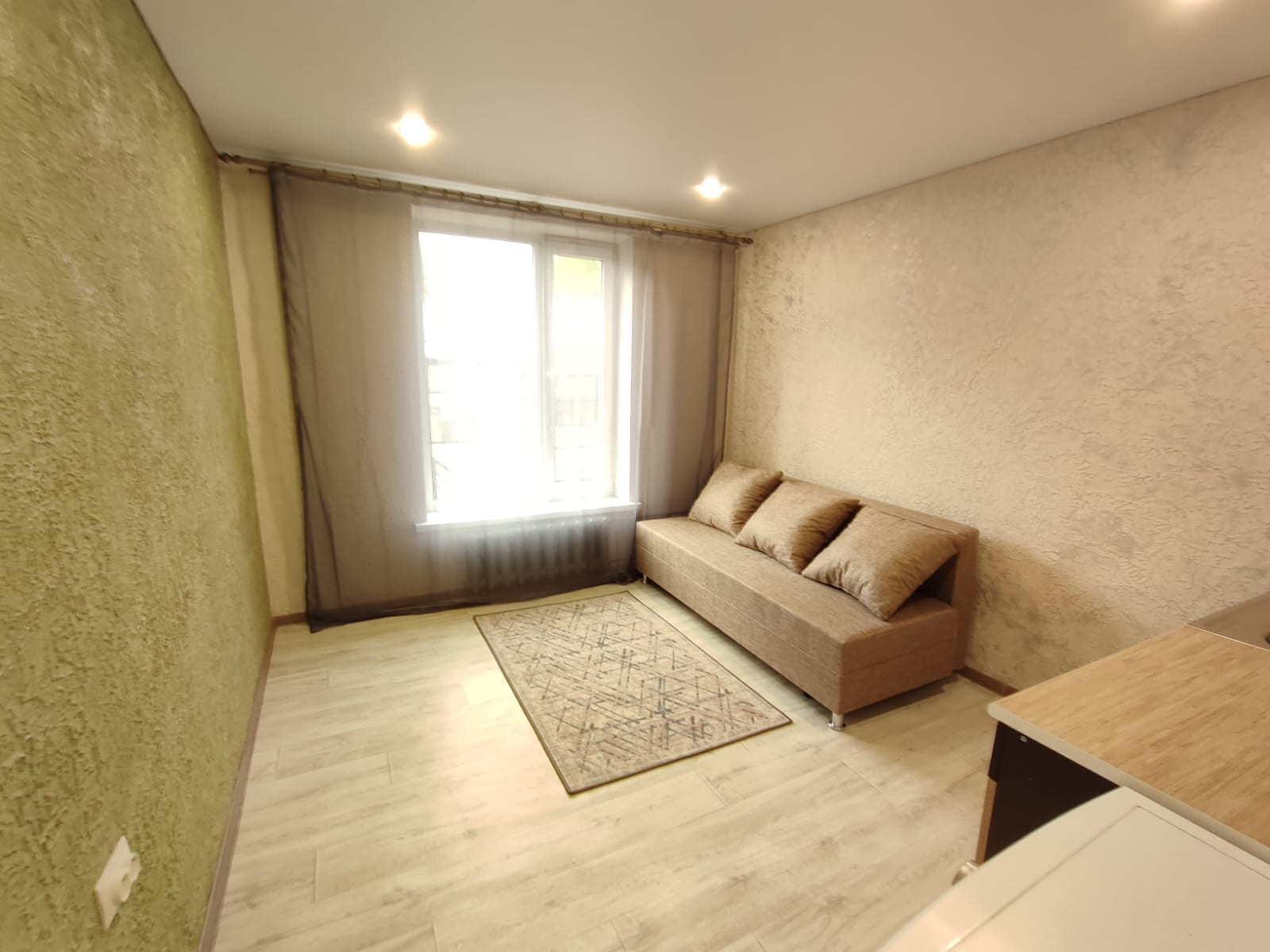 В квартире - на стенах дизайнерское решение: декоративная штукатурка, полы – новый полу-профессиональный линолеум, потолки натяжные по всей студии. Новая электропроводка! Трубы и сантехника заменены. Окно пластиковое. Отличная входная дверь.