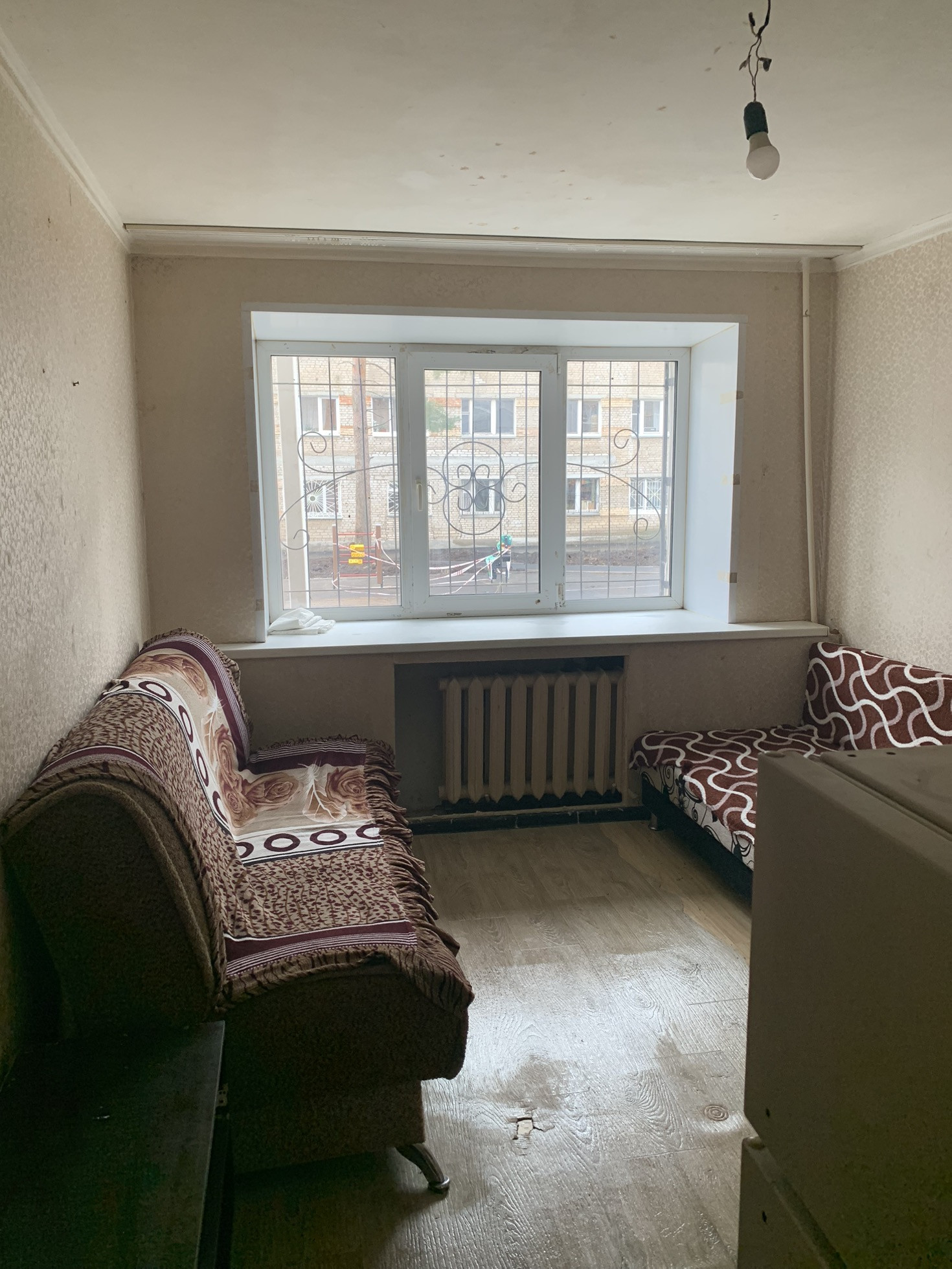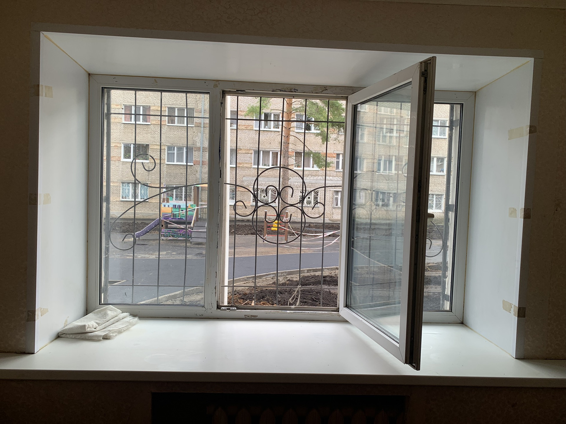 Окно выходит на детскую площадку.