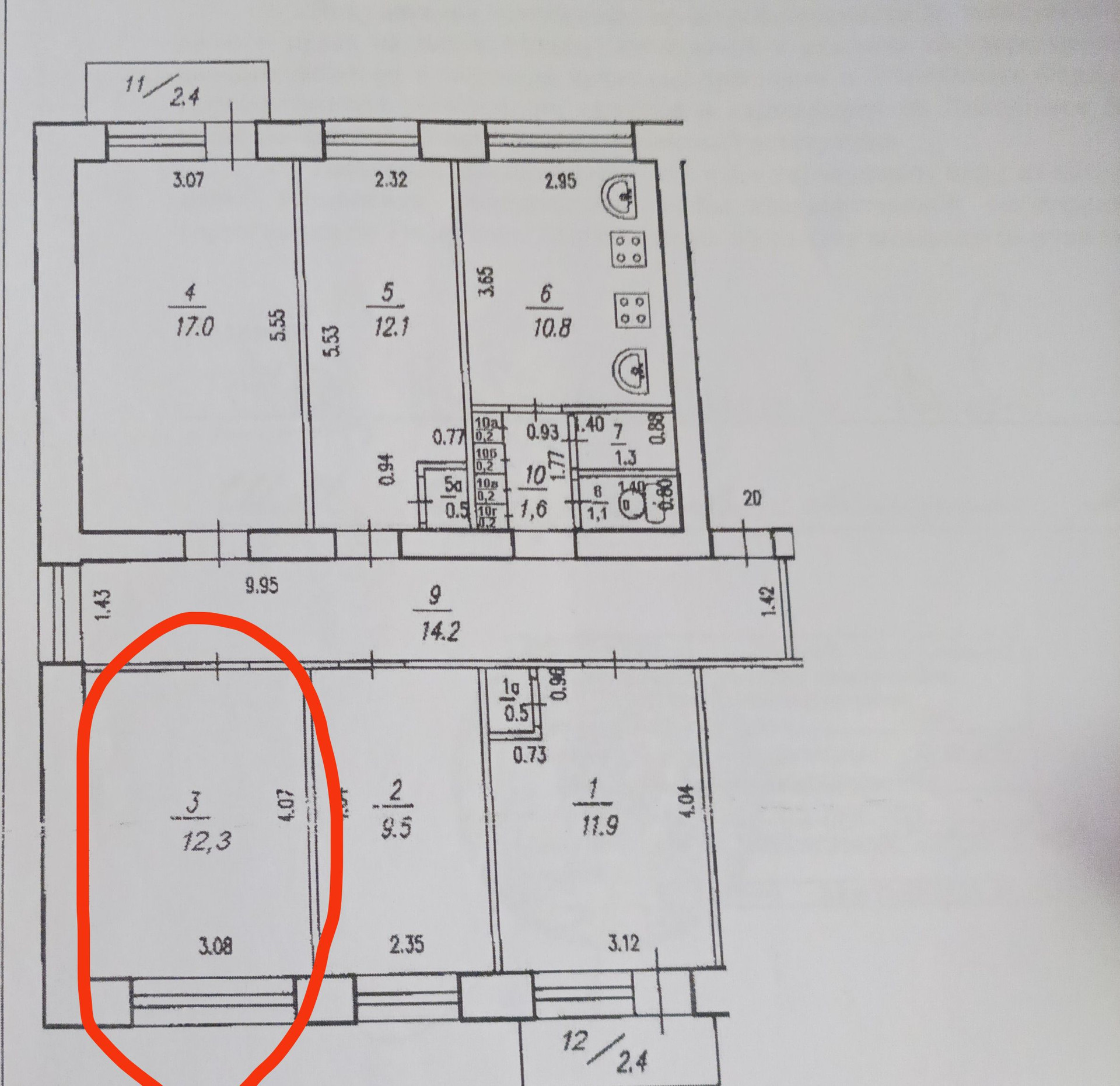Площадь кухни 10.8 м2