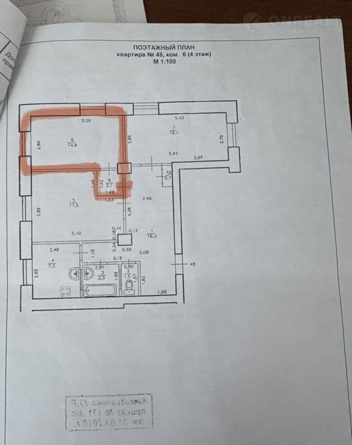 Общая площадь 17 м2