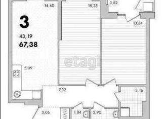 Трехкомнатная квартира на продажу, 67.4 м2, улица Уфимское Шоссе, 24/1