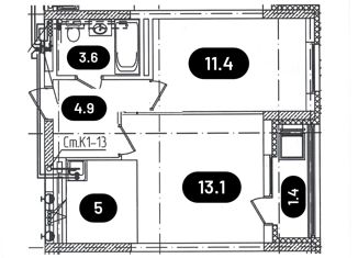 Общая площадь: 36.9 м2