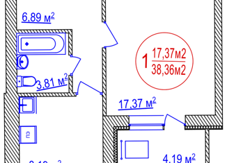 Продается однокомнатная квартира, 38.36 м2, улица Летчиков, 1
