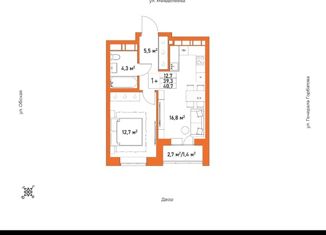 Однокомнатная квартира на продажу, 40.7 м2, улица Менделеева, 132