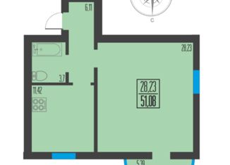 Общая площадь: 51 м2