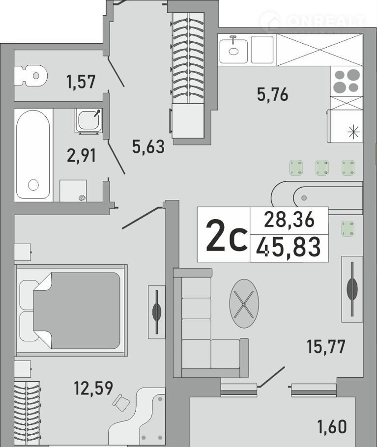 Жилая площадь 28.4 м2