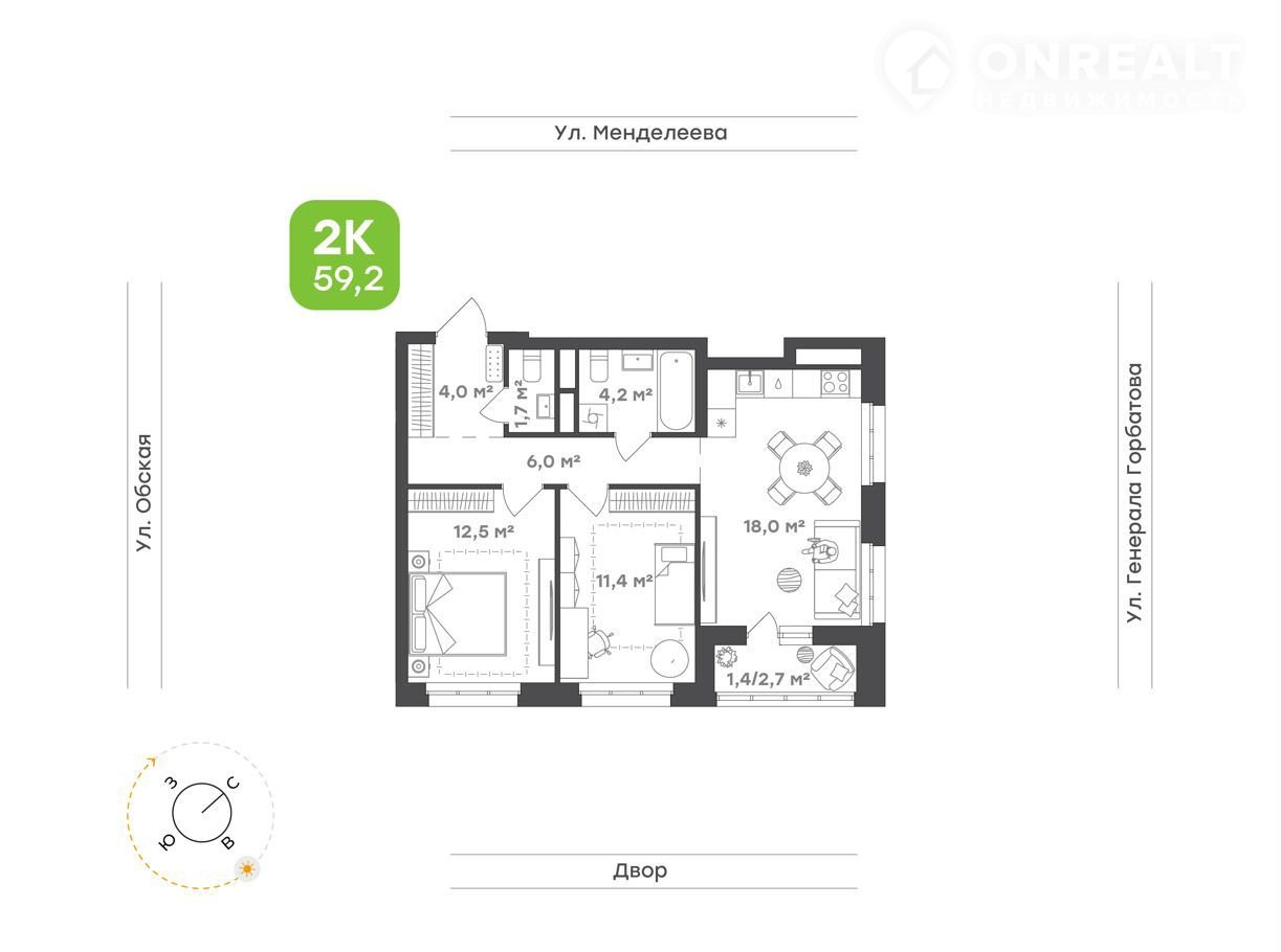 Общая площадь 59.2 м2