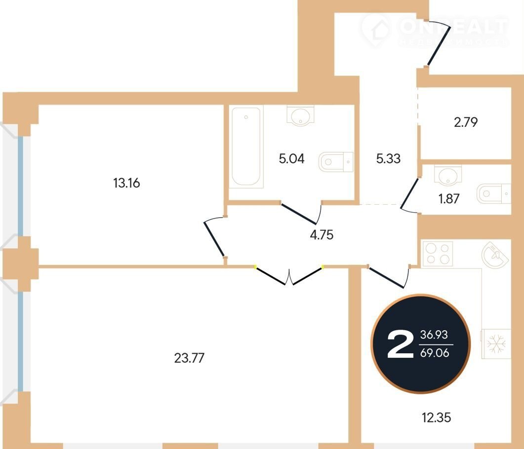 Общая площадь 69.3 м2