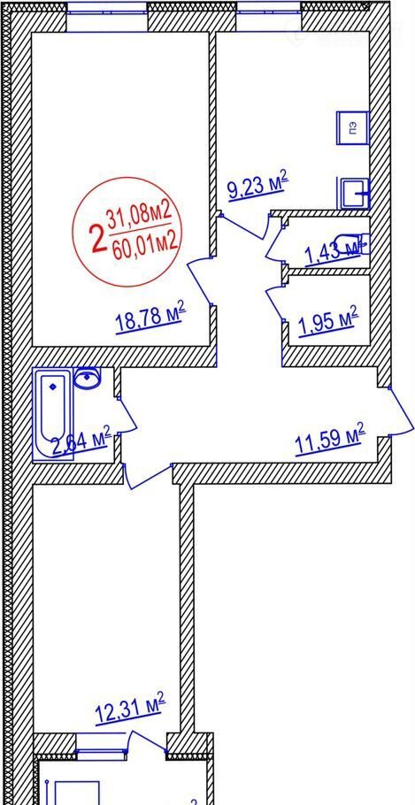 Жилая площадь 31.1 м2