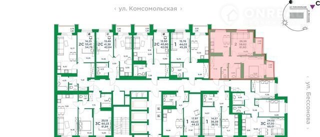 2-комнатная квартира, 58.6 м2, этаж 8 / 24, на продажу в Уфе, Комсомольская улица, 8