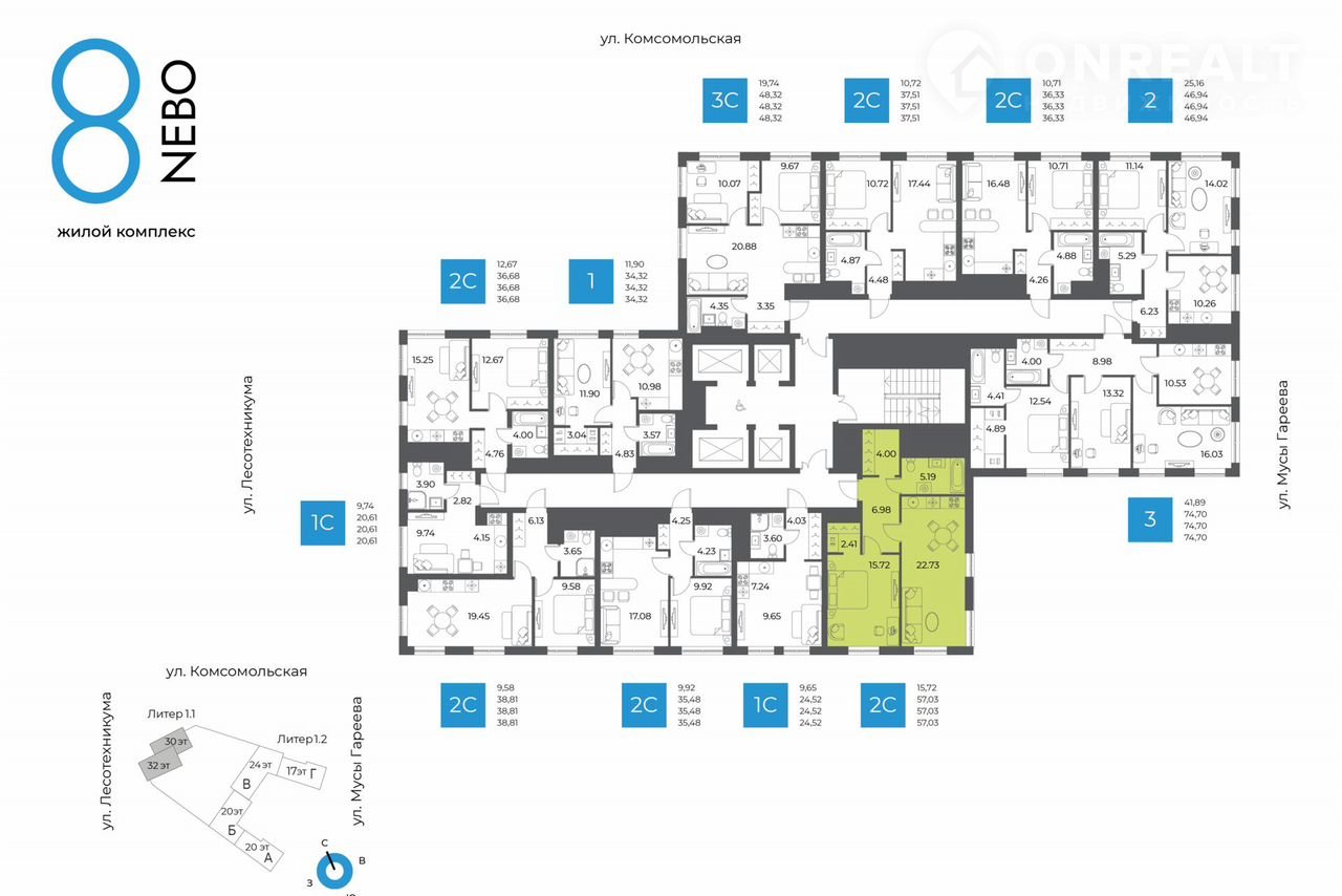 Литер 1, Секция 1. 13-й этaж 32- этaжнoгo жилoгo дома