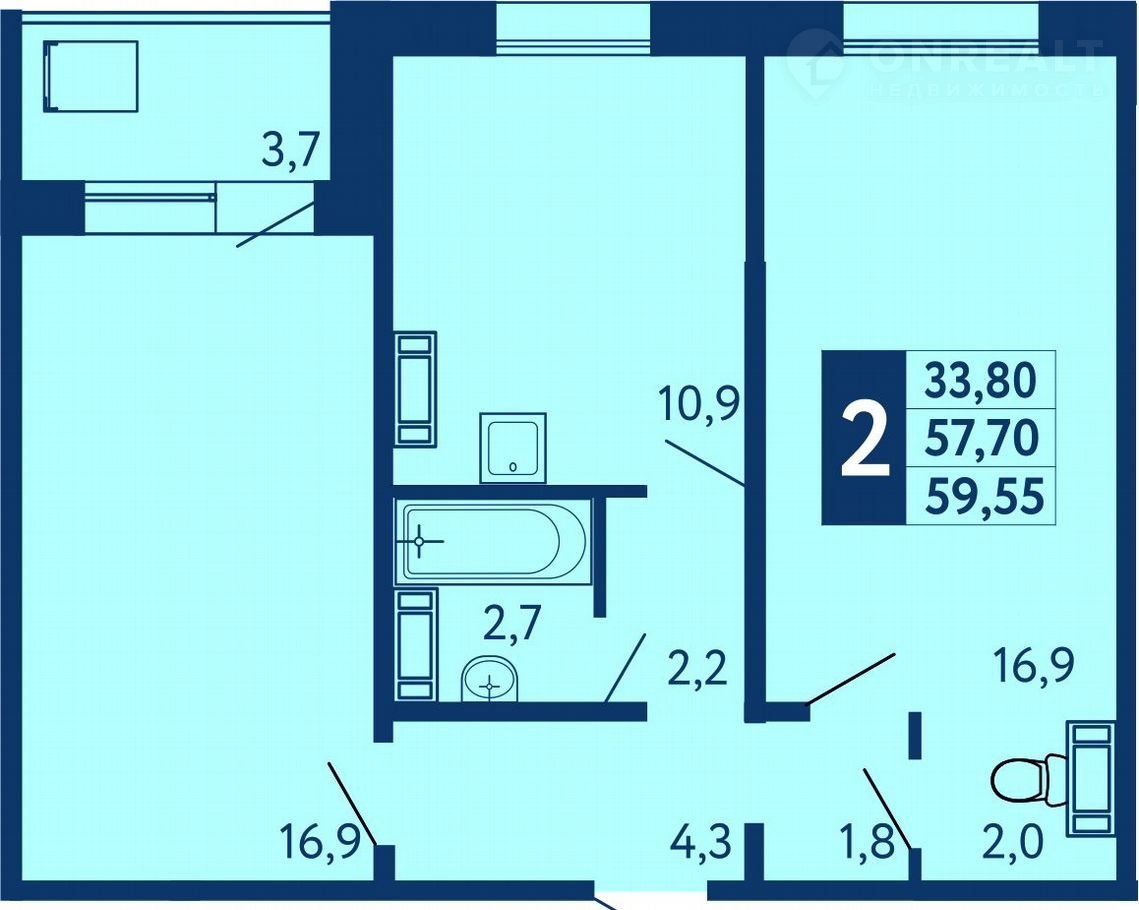 Общая площадь 58.8 м2