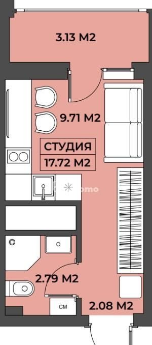 Общая плoщaдь - 17.71 кв.м.