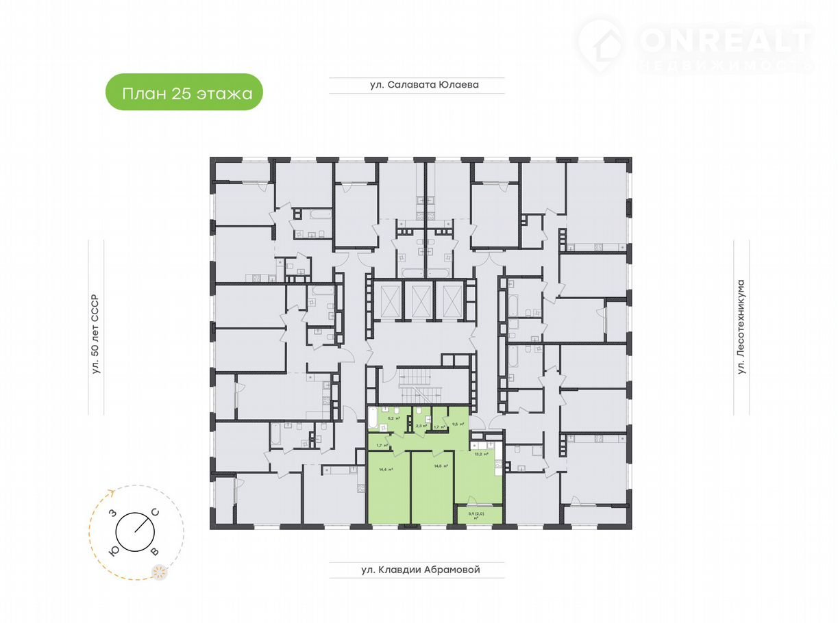 2-комнатная квартира, 66.4 м2, этаж 25 / 25, на продажу в Уфе, жилой комплекс Бионика Парк, 7